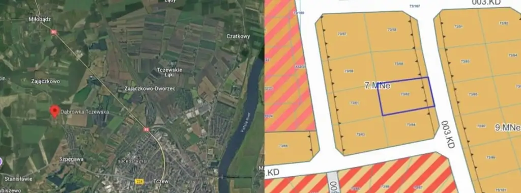 Zgodnie z zaświadczeniem Wójta Gminy Tczew nr WKI.6727.1.77.2025 z dnia 19.03.2025 r. działka nr 73/62 obrębu Dąbrówka Tczewska, gm. Tczew, położona jest na obszarze objętym miejscowym planem zagospodarowania przestrzennego uchwalonym Uchwałą Nr VI/83/2003 Rady Gminy Tczew z dnia 26 marca 2003 r. Działka 73/62 znajduje się w strefie terenów zabudowy mieszkaniowej jednorodzinnej wolnostojącej.