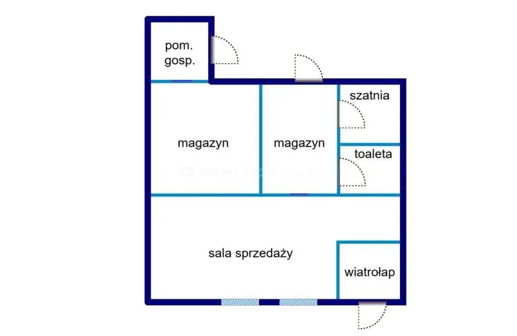 Nieruchomość składa się z jednego głównego pomieszczenia przeznaczonego na działalność handlową oraz dodatkowych przestrzeni, które mogą służyć jako magazyn czy zaplecze biurowe. Dzięki swojemu rozkładowi, lokal może być łatwo adaptowany na różnorodne potrzeby biznesowe.