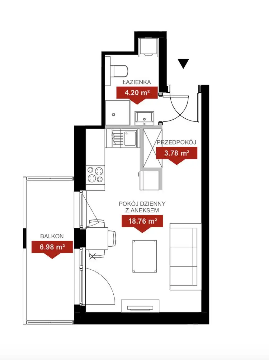 - pokój dzienny z aneksem kuchennym - 18,76 m²