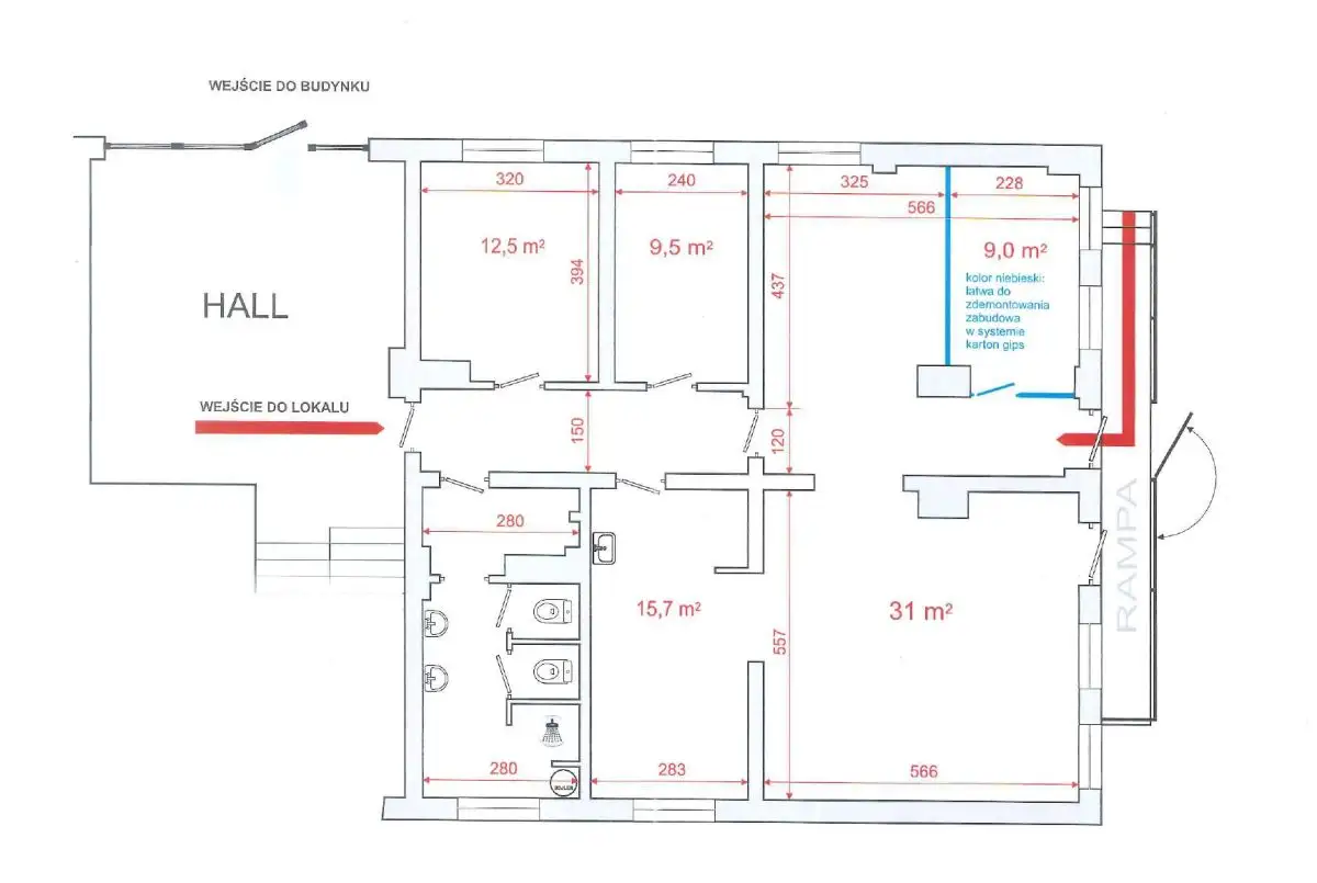 Do wynajęcia lokal użytkowy o pow. 126,95 m² posadowiony na parterze w dwupiętrowym budynku przy ul. Bursaki.