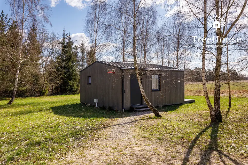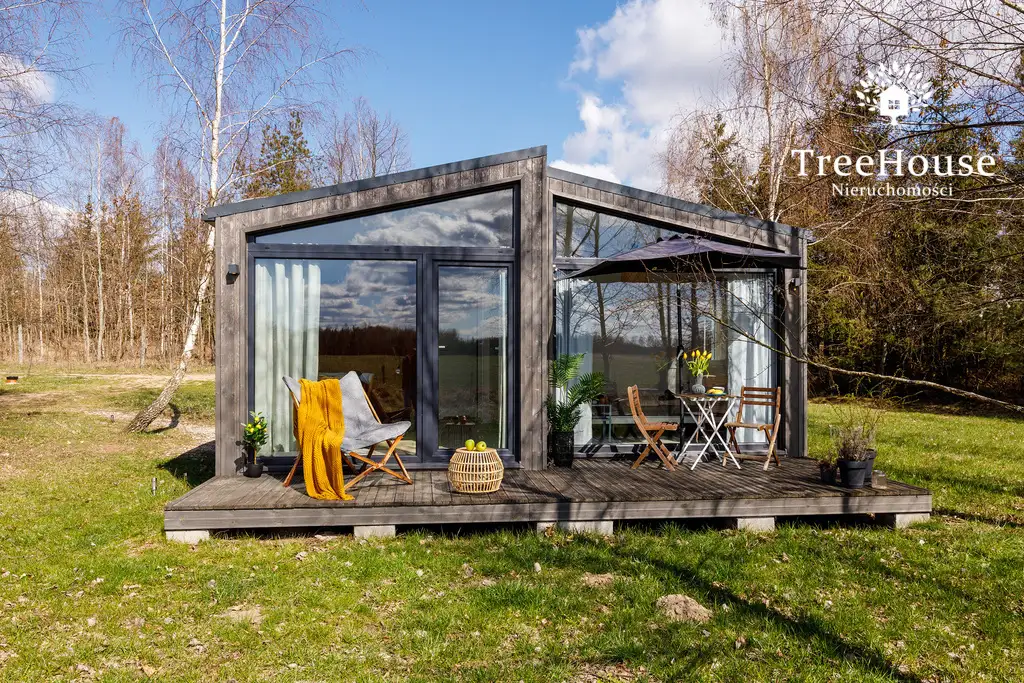 Na działce znajduje się nowoczesny domek modułowy z 2021 roku o powierzchni zabudowy 34,8 m² oraz tarasem o powierzchni około 10 m². Jest to budynek całoroczny, solidnie wykonany i w pełni funkcjonalny – gotowy zarówno do zamieszkania, jak i do natychmiastowego wynajmu.