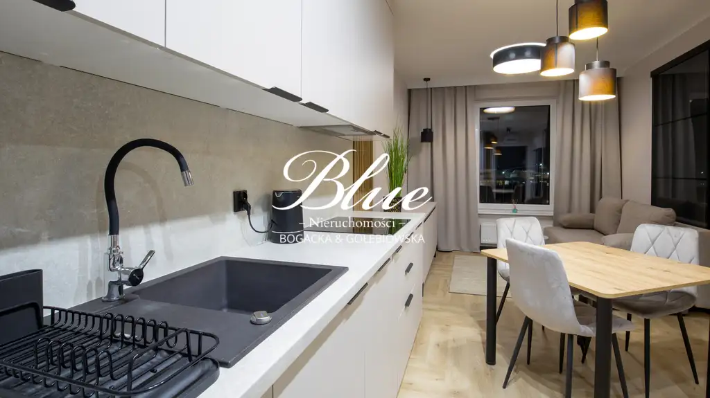Mieszkanie w pełni wyposażone - nowe sprzęty agd - lodówka, piekarnik elektryczny, płyta indukcyjna, zmywarka oraz pralkosuszarka.