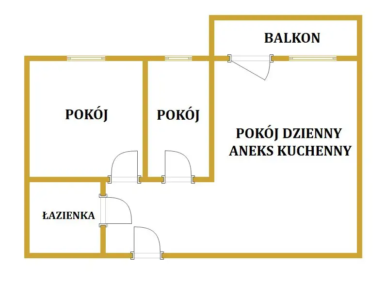 Pokój dzienny z wyjściem na balkon, gabinet, sypialnia, łazienka z WC, przedpokój.