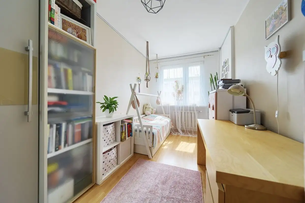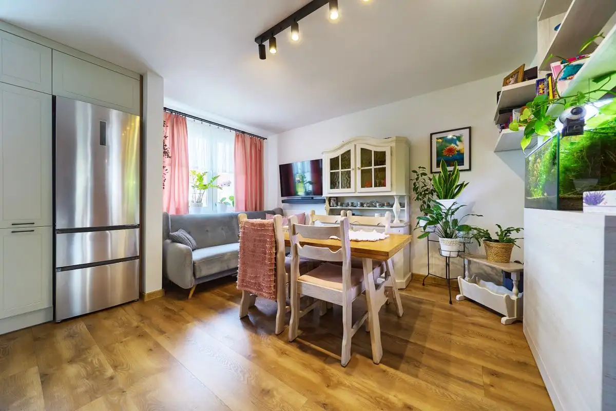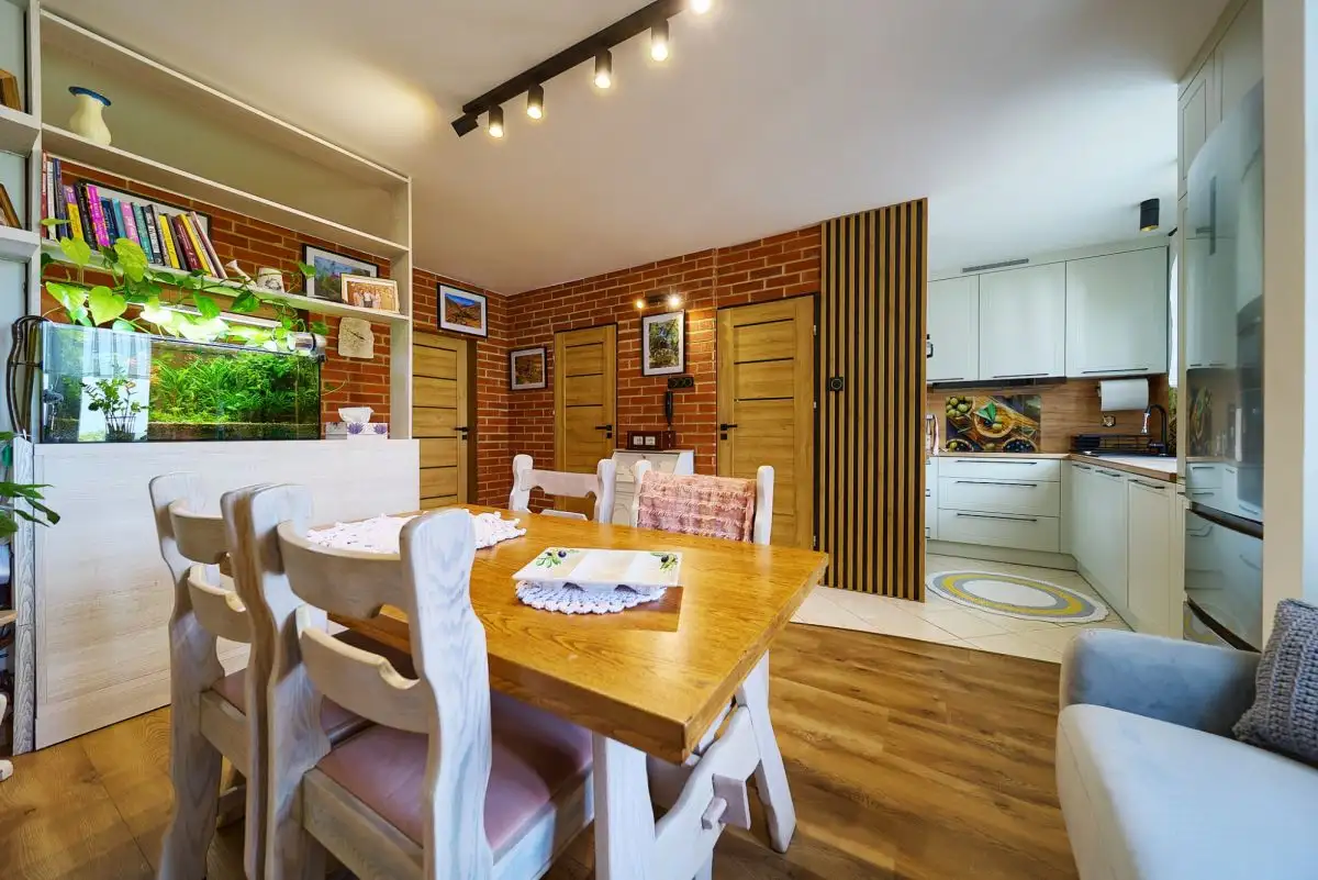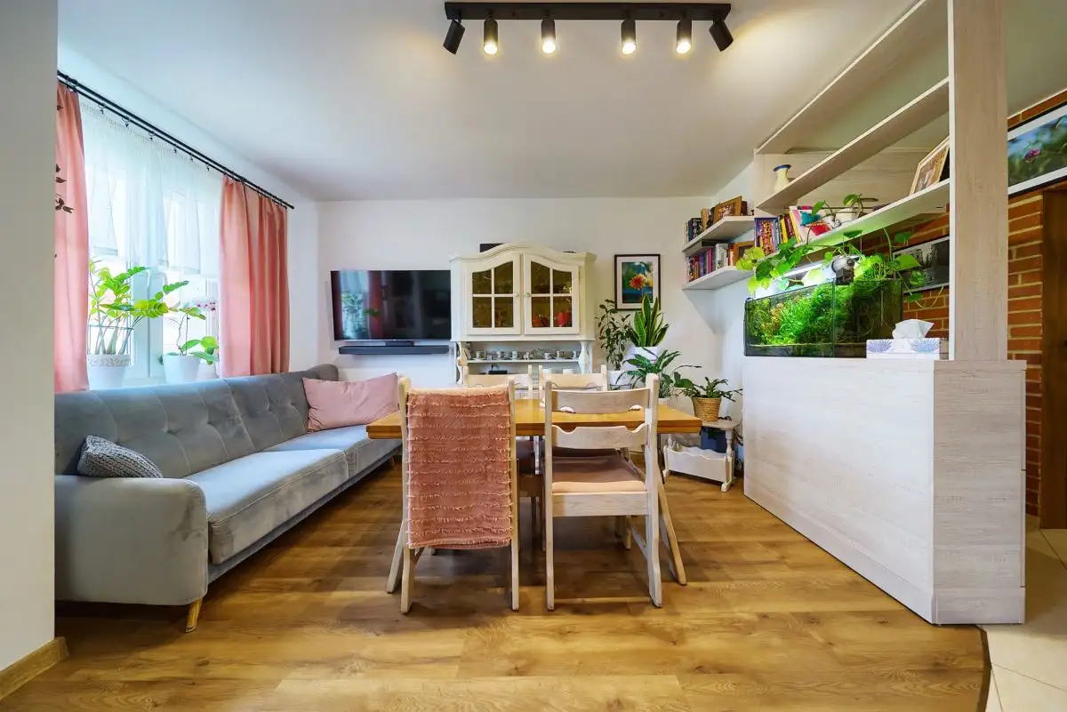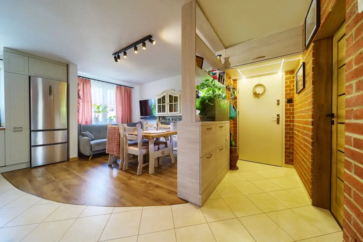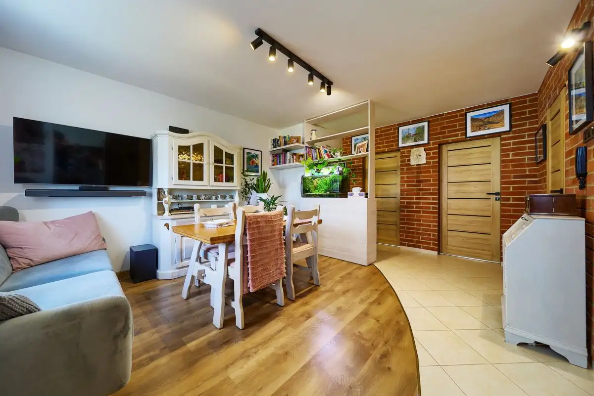 Rozkład i powierzchniaMieszkanie o powierzchni 56 m² charakteryzuje się przestronnym, dwustronnym układem zapewniającym doskonałe doświetlenie. Sercem lokalu jest duży salon połączony z kuchnią i jadalnią, tworzący imponującą strefę dzienną idealną do życia rodzinnego i przyjmowania gości. Dwa niezależne pokoje, z których jeden ma wyjście na balkon, zapewniają prywatność wszystkim domownikom. Przemyślany układ po zmianie podczas remontu maksymalnie wykorzystuje dostępną przestrzeń.