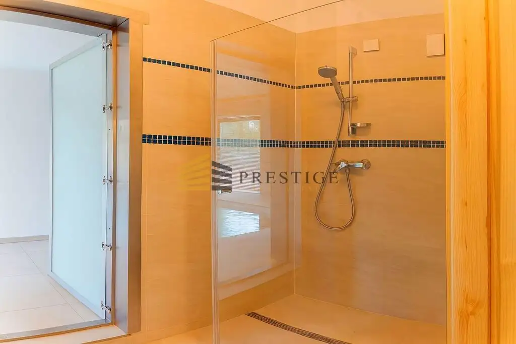 - w domu jest duży basen z systemem przeciwprądowym, obok basenu jest sauna z prysznicem