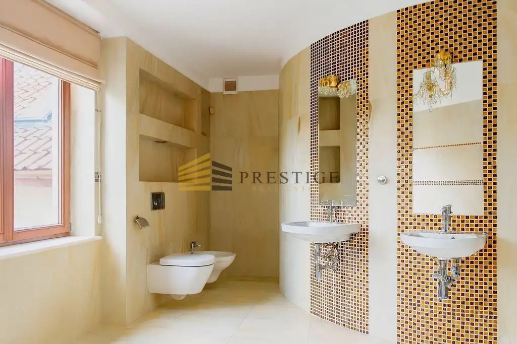 Rezydencja wykończona w bardzo wysokim standardzie z materiałów najwyższej klasy, nieumeblowana. Składa się na nią: