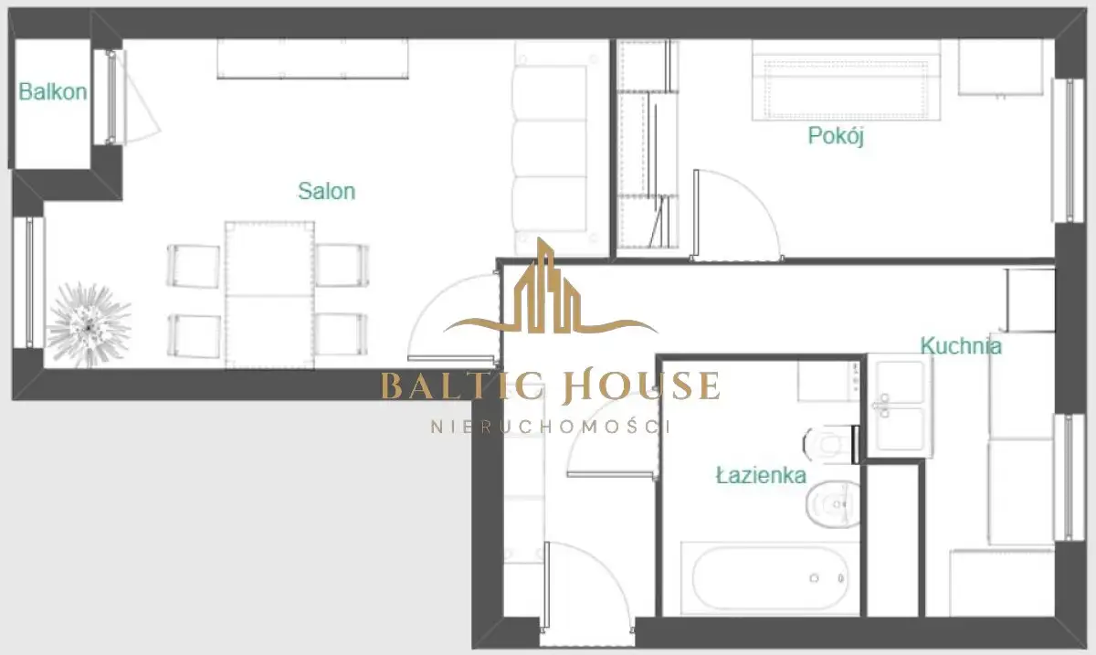 - dwa niezależne pokoje (brak pokoi przechodnich),