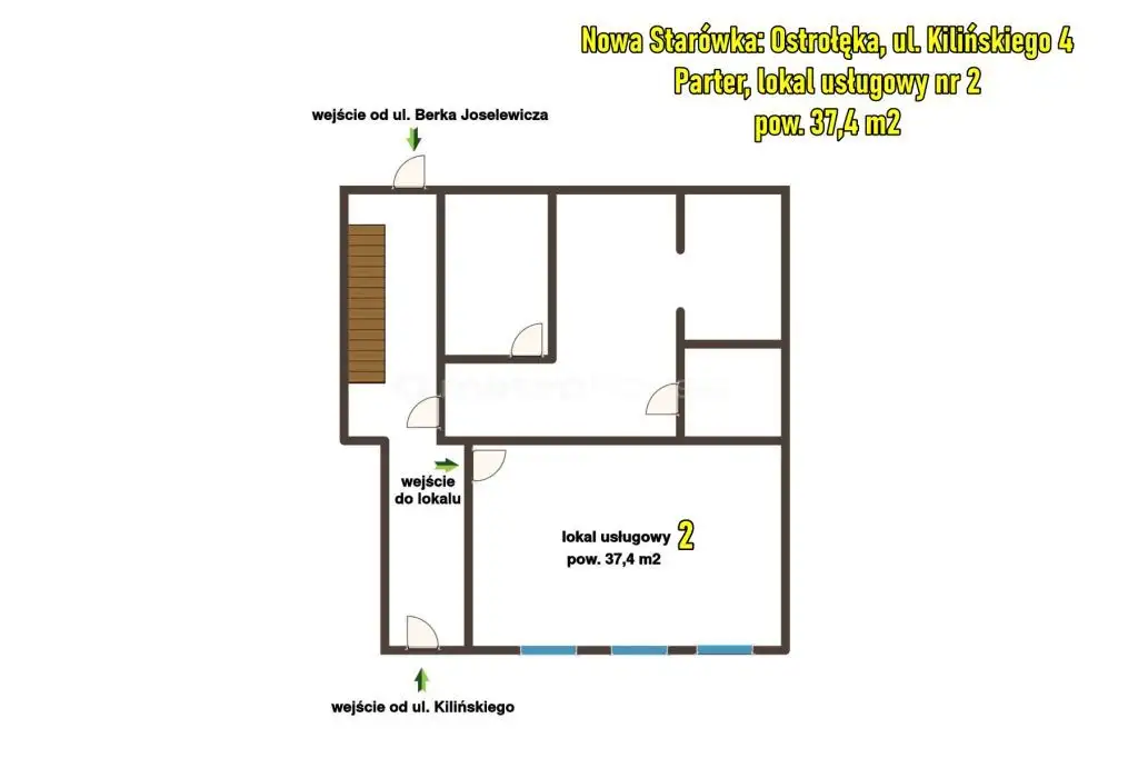 Budynek posiada dwa wejścia od ulic Berka Joselewicza oraz Kilińskiego, co znacząco podnosi funkcjonalność i sprzyja różnym typom działalności.