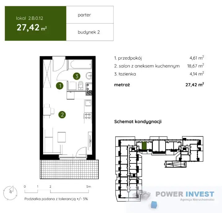 Powierzchnia: 27,42 m² Piętro: Parter Ekspozycja: Południowa