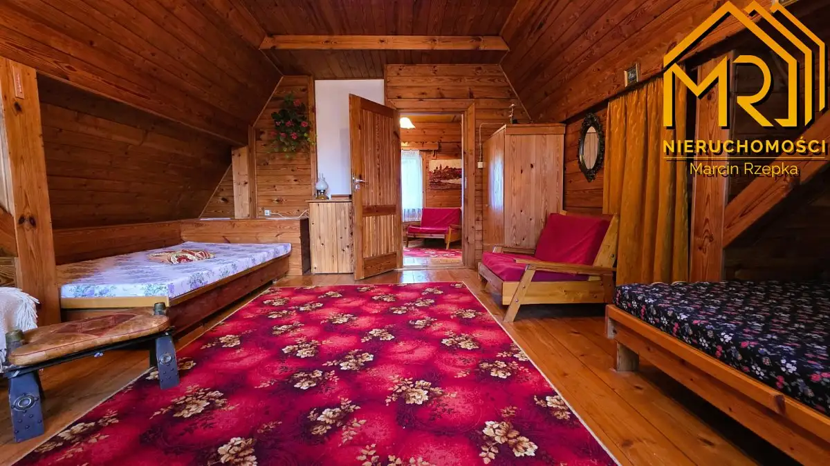 Na sprzedaż przedstawiamy wyjątkowy, klimatyczny dom letniskowy, położony w malowniczej miejscowości Iwkowa, w powiecie brzeskim - miejscu, gdzie cisza, przyroda i spokój łączą się z wygodą codziennego życia. Budynek został wybudowany w latach 1977-1980, posiada powierzchnię użytkową około 55 m² i utrzymany jest w bardzo dobrym stanie technicznym. Wybudowany z pustaka, ocieplony, wewnątrz wykończony w drewnie z bali, kryty blachodachówką, z plastikową stolarką okienną i drewnianymi stropami, oferuje wnętrza, które urzekają ciepłem, przytulnością i góralskim klimatem. Podłogi wykonane są z drewna, a dom sprzedawany jest z pełnym umeblowaniem, gotowy do zamieszkania od zaraz.