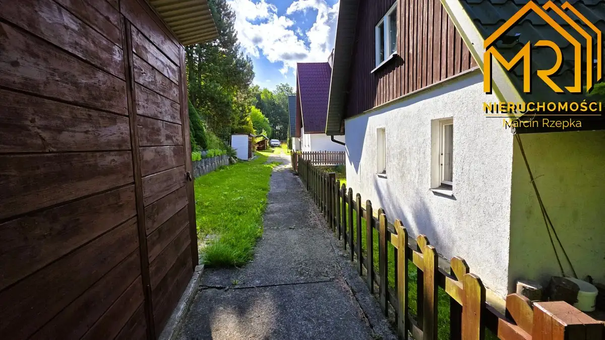Nieruchomość posadowiona jest na w pełni ogrodzonej działce o powierzchni 0,07 ha, zagospodarowanej i zadbanej, z altanką oraz szopą na drewno, co czyni to miejsce idealnym do odpoczynku na świeżym powietrzu, grillowania z rodziną lub przyjaciółmi. Dom znajduje się w luźnej zabudowie, w otoczeniu zieleni, co zapewnia spokój, prywatność i wyjątkowy kontakt z naturą. Media dostępne na działce to prąd, wodociąg i kanalizacja w formie szamba, brak gazu.