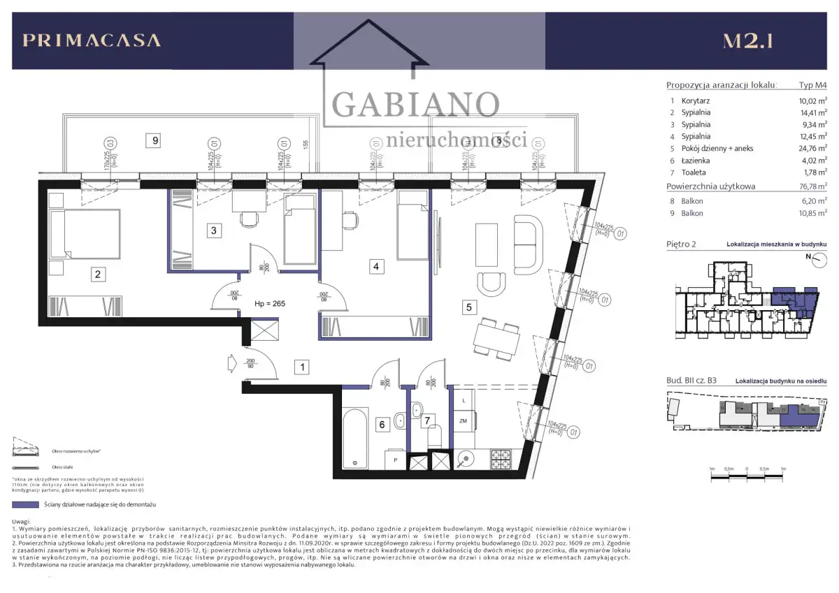 zaprojektowane z myślą o komforcie codziennego życia.Przestrzeń mieszkalna ma 76,78 m² i składa się z:- salonu z aneksem kuchennym - 24,76 m²;
