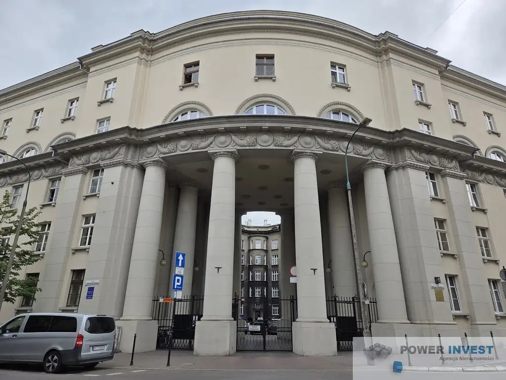 The property, with a total area of 98.81 m², is situated on the 4th floor of a five-story, atmospheric tenement house from the 1920s. The building is made of brick with a skeleton structure, does not have an elevator, but this is compensated by its unique character and solid construction.