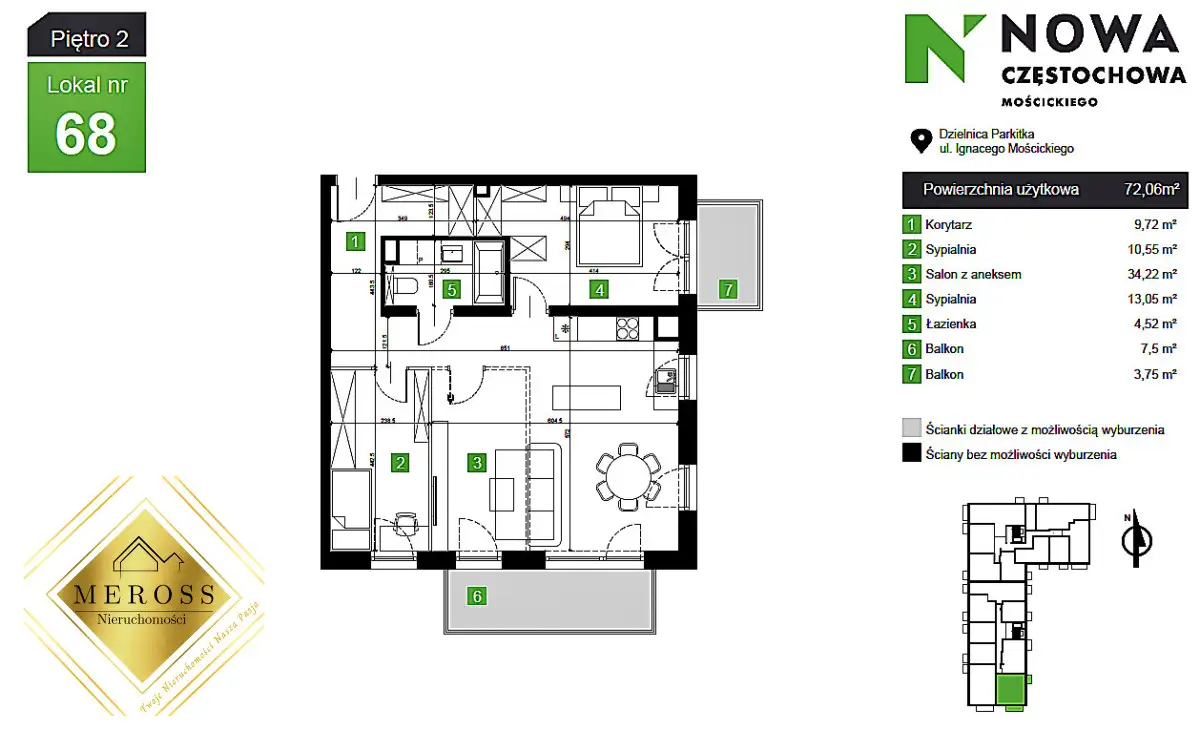 MEROSS Nieruchomości & Nowa Deweloperprzedstawia do sprzedaży mieszkaniezlokalizowane w dzielnicy Parkitka w Częstochowiena osiedlu Nowa Częstochowa Mościckiego Mieszkanie może być...