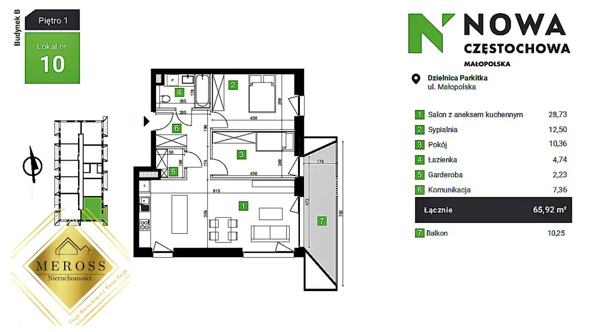 MEROSS Nieruchomości & ParkLand Inwestycjeprzedstawia do sprzedaży mieszkaniezlokalizowane w dzielnicy Parkitka w Częstochowiena osiedlu Park MałopolskaMieszkanie może być wyposażonew Inteligentny...