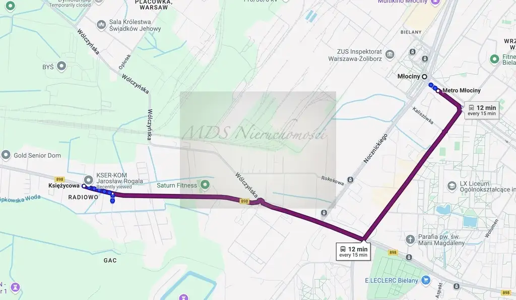 Do stacji metra Młociny 2,8 km, 6 min autem, 12 min autobusem