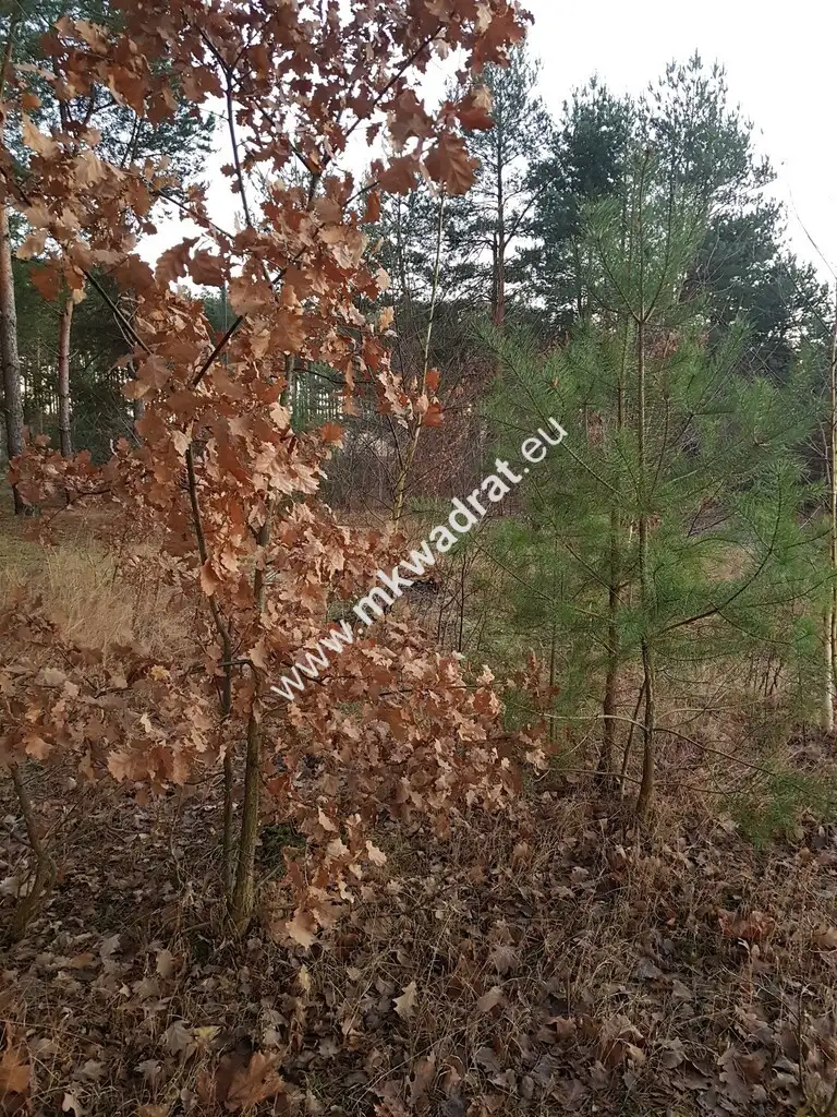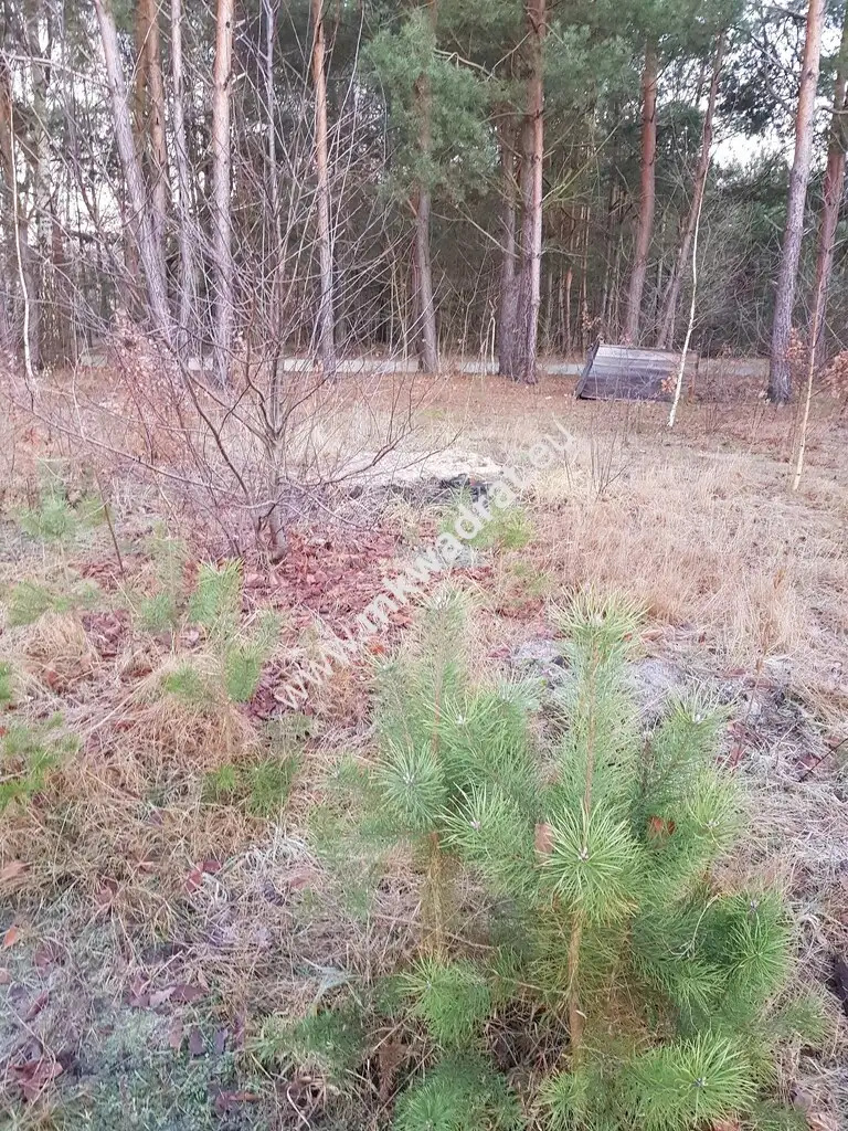 Prostokątna działka z wjazdem z drogi asfaltowej. Teren równy, pokryty samosiejkami (sosna, brzoza, itp). Media: prąd, woda, gaz przy drodze...