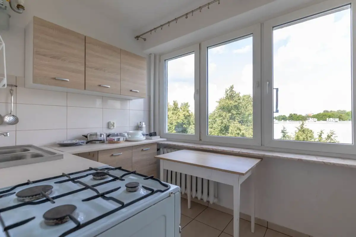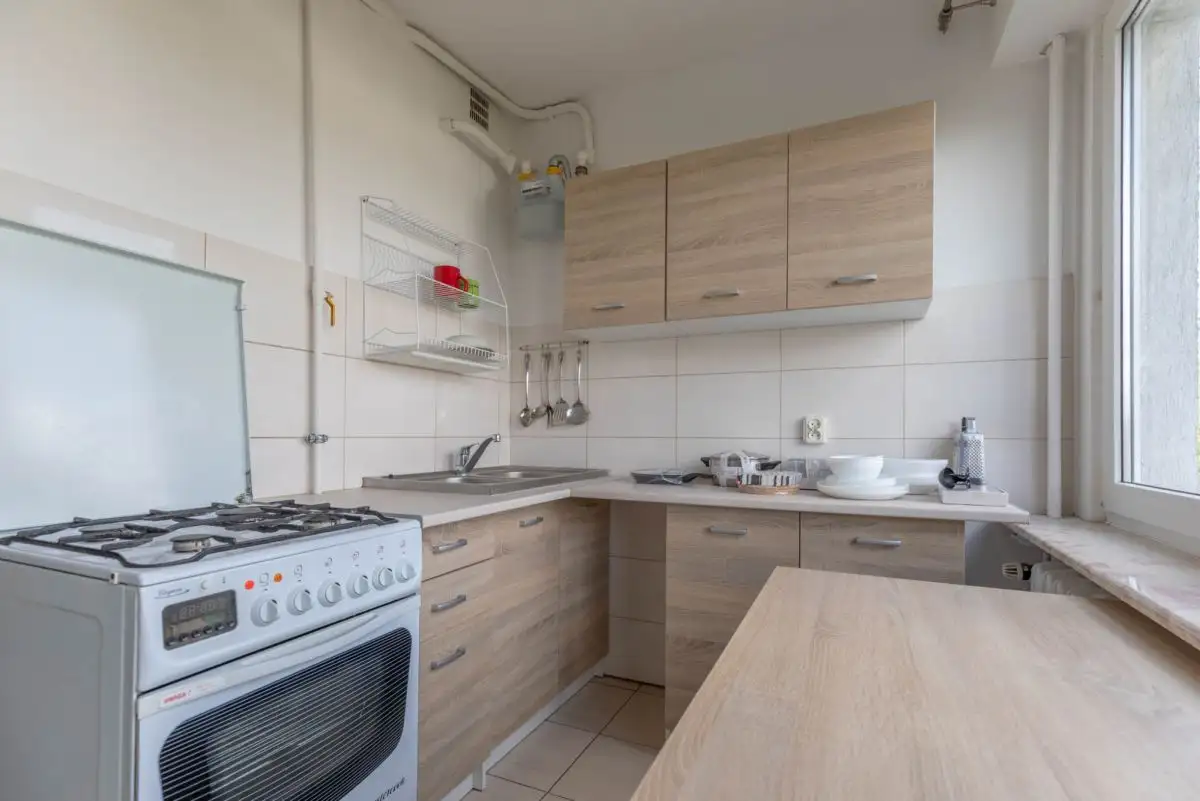 - Wyposażenie: pralka, lodówka, kuchenka, piekarnik
