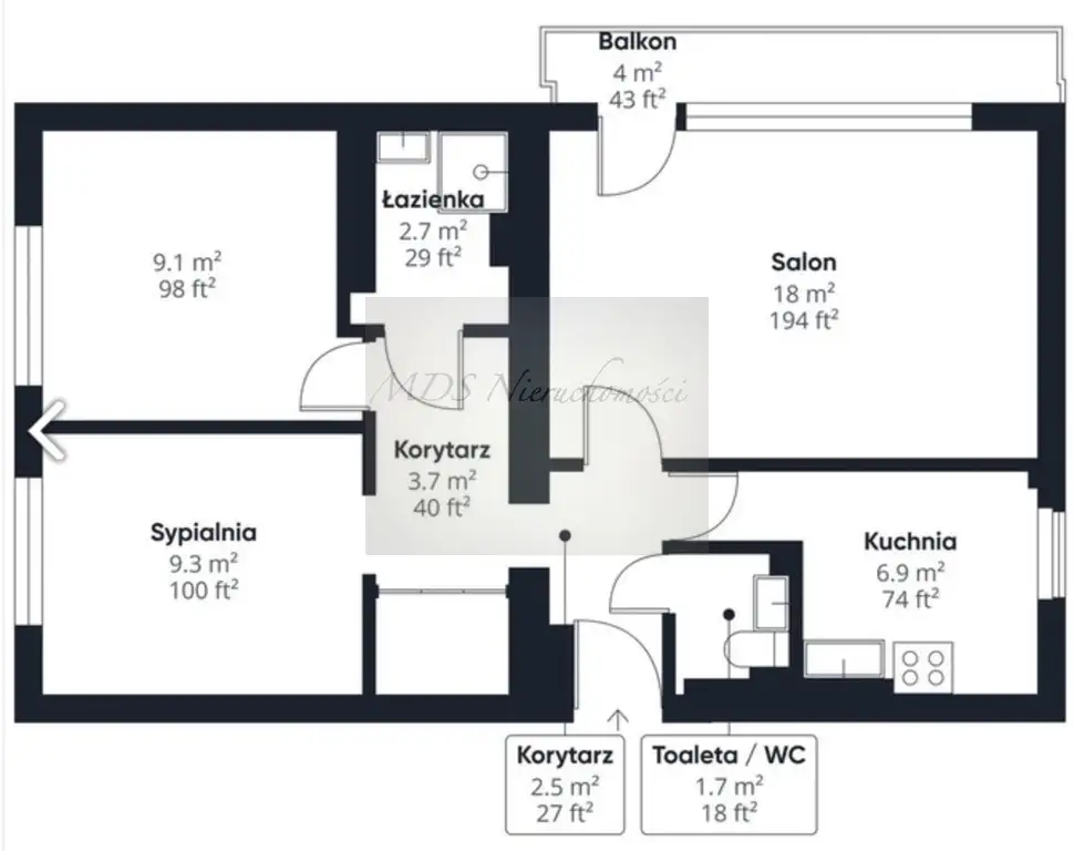 układ mieszkania pozwala na podział funkcjonalny na dwie osobne kawalerki na wynajem