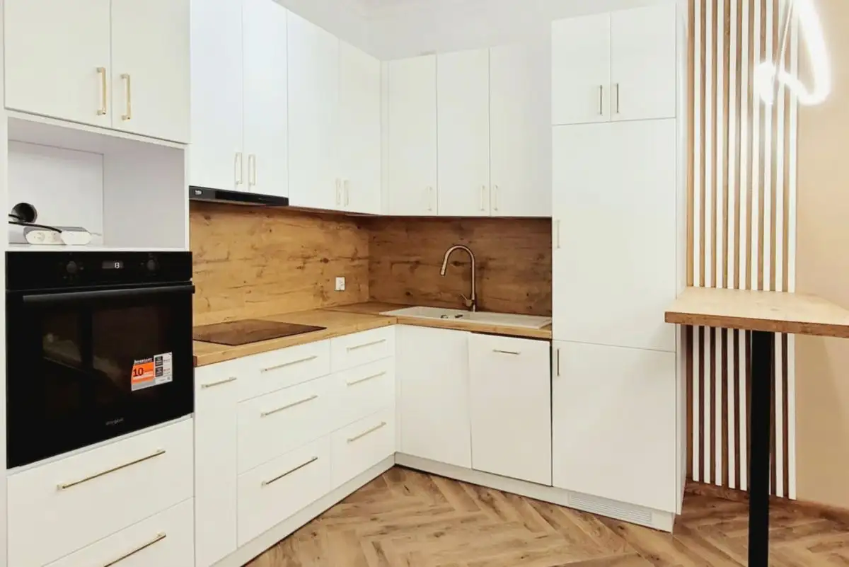- nowe sprzęty kuchenne: piekarnik, płyta indukcyjna, okap, zmywarka, lodówka
