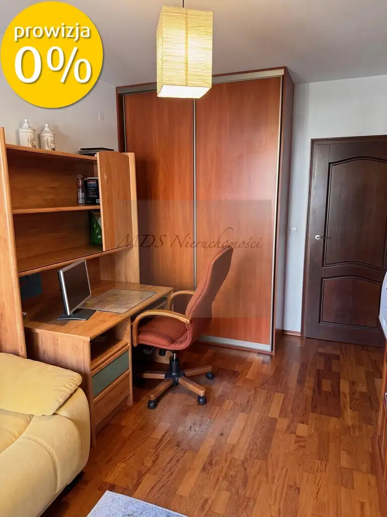 Sypialnia 1:  13,7 m², duże okno skierowane na południowy zachód, na cichy zielony skwer wewnątrz osiedla. Bardzo jasna i zaciszna. Podłoga z deski barlineckiej, duża szafa w stałej zabudowie.
