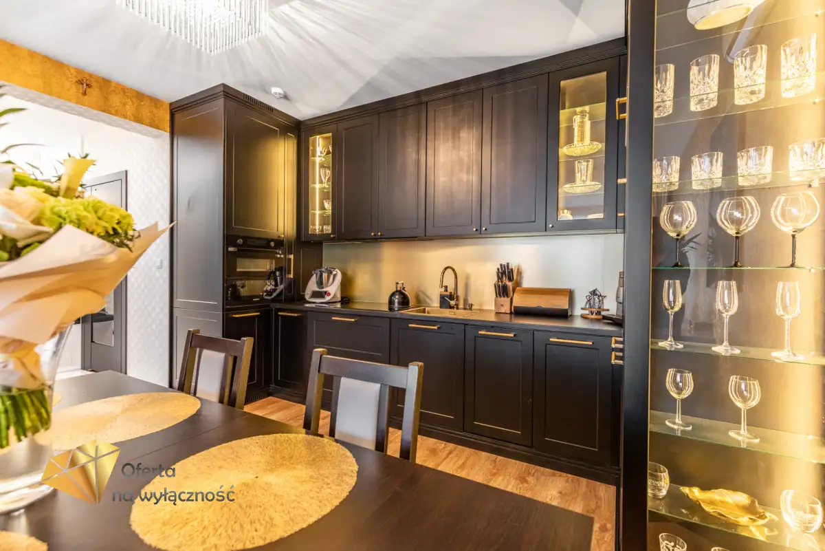 - Wyposażenie: zabudowa kuchenna, sprzęt AGD, zabudowa stała;