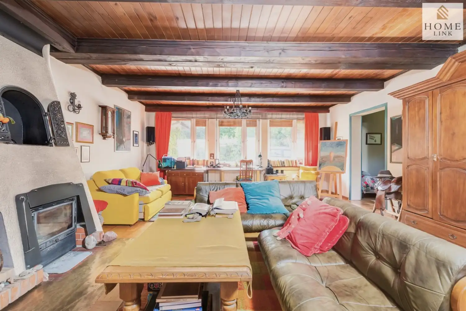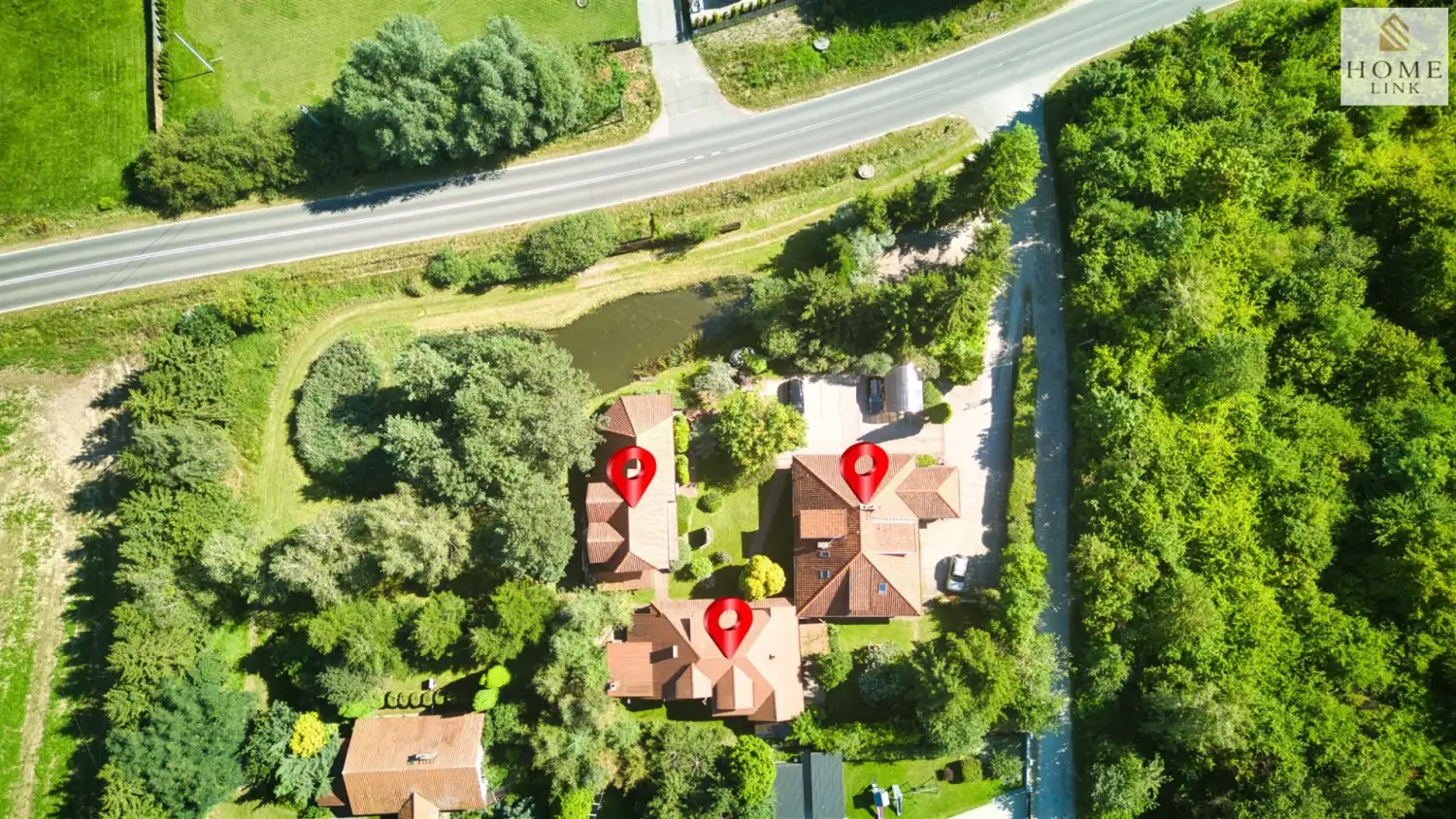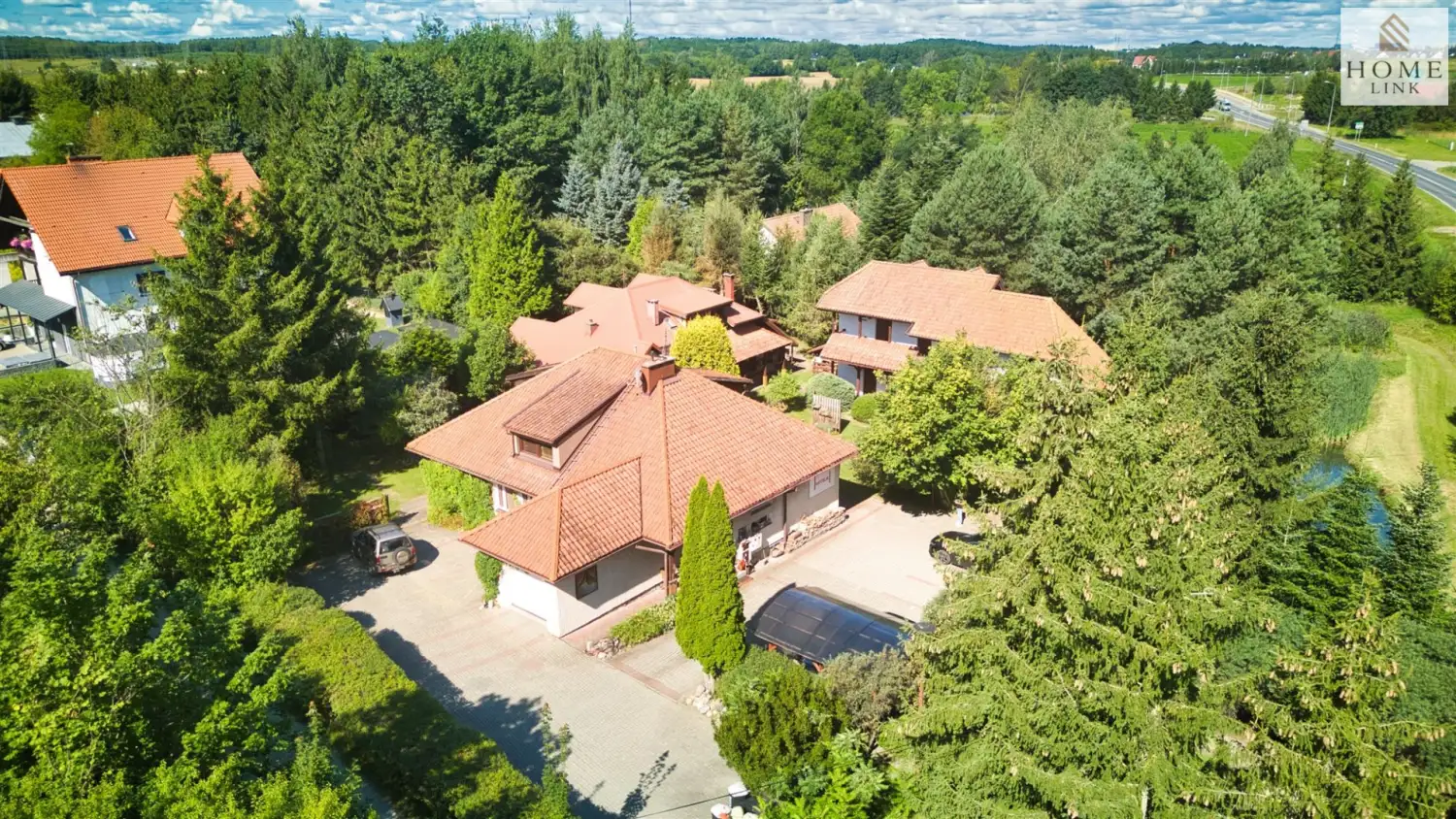 Dom mieszkalny z garażem o powierzchni użytkowej 204,34m², wybudowany w 1995 roku w technologii tradycyjnej murowanej, z drewnianym dachem pokrytym dachówką. Na parterze znajduje się przestronny salon wypoczynkowy z kominkiem wychodzący na otwartą kuchnię ze spiżarnią i jadalnią oraz mniejszym pokojem gabinetowym. Parter domu łączy funkcjonalność z komfortem i elegancją. Całość wykończona jest wysokiej jakości drewnem: dębowym, bukowym i sosnowym. Na użytkowym poddaszu znajduje się duża stylowa sypialnia z łazienką oraz dwa dodatkowe pokoje z łazienkami. Dodatkowo na parterze domu mieści się pokój gościnny z łazienką i niezależnym wejściem od strony ogrodu. Cały dom można łatwo przekształcić na potrzeby działalności pensjonatowej. Dom położony jest na zagospodarowanej, ogrodzonej działce o powierzchni 616 m², posiadającej duży brukowany parking.
