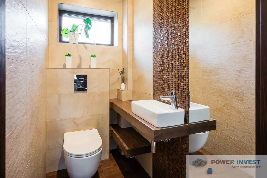 Dom jest wybudowany wg najnowszych standardów wg zmodyfikowanego projektu PERONIA 2 - ogrzewanie pompą ciepła, rekuperacja, własne ujęcie wody, kanalizacja miejska, kominek.