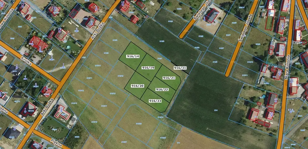 - dz. 916/14, 916/19, 916/20, 916/21, 916/22, 916/23 przeznaczone są jako tereny zabudowy mieszkaniowej jednorodzinnej (MN117),