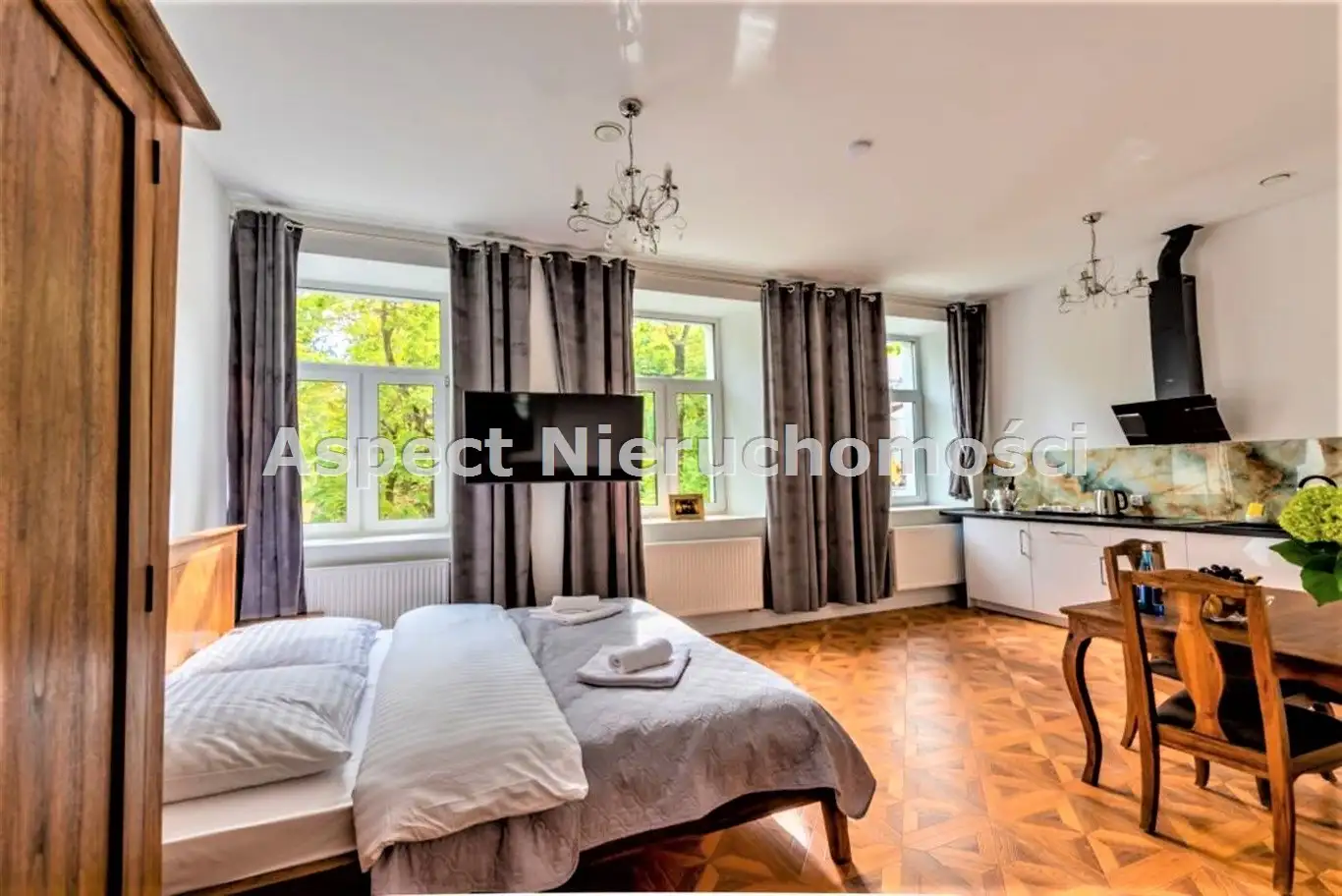 duży pokój z aneksem kuchennym,