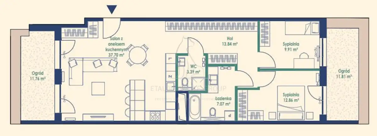 Spiesz się! - to ostatnie mieszkania w tej elitarnej lokalizacji - Bezpośrednio od deweloperaKomfort i Wygoda - Nowoczesne Udogodnienia - Prestiżowy ProjektParter - 3 pokoje - Salon z aneksem kuchennym i 12m² ogrodem - 2 Sypialnie z 12m² ogrodem - Łazienka i WC/pomieszczenie gospodarcze