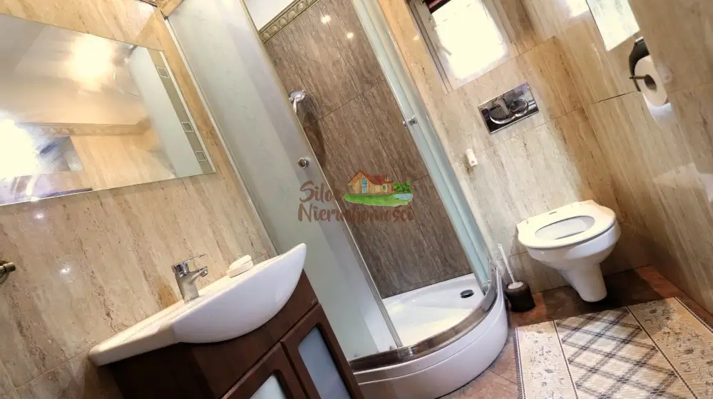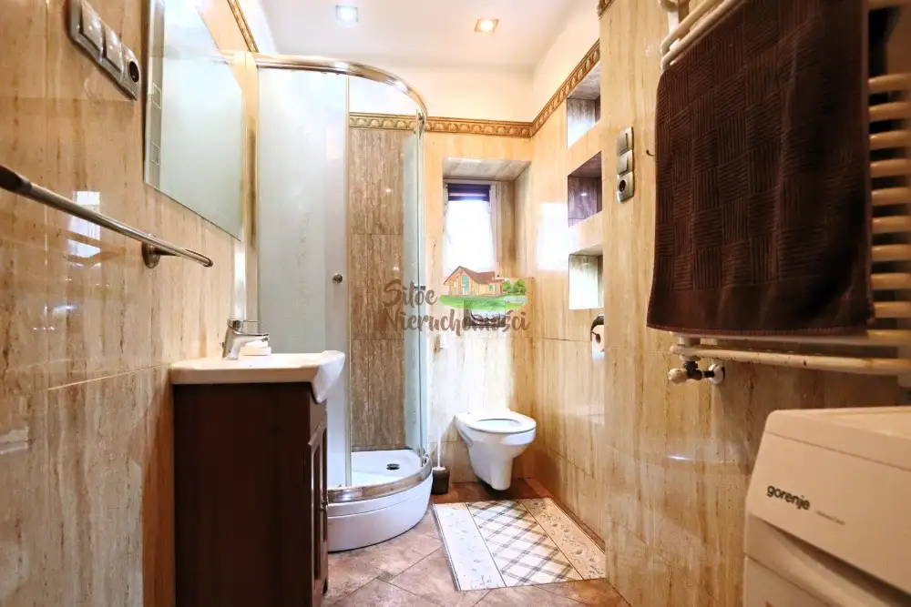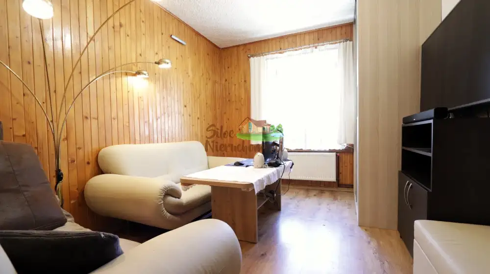 Podczas remontu, kilka lat temu, na ścianach położono gładzie, a w kuchni zastosowano ozdobne kamienie. Łazienka została zmodernizowana - z prysznicem i nowoczesną armaturą, w tym baterię z termostatem. Oba pokoje ozdobiono boazerią, co dodaje przytulnego charakteru dla ludzi preferujących drewniane akcenty. W pokojach i przedpokoju zamontowano funkcjonalne panele, a w łazience terakotę. Okna PCV zapewniają dobrą izolację akustyczną i termiczną. Bezpieczeństwo mieszkańcom gwarantuje domofon.