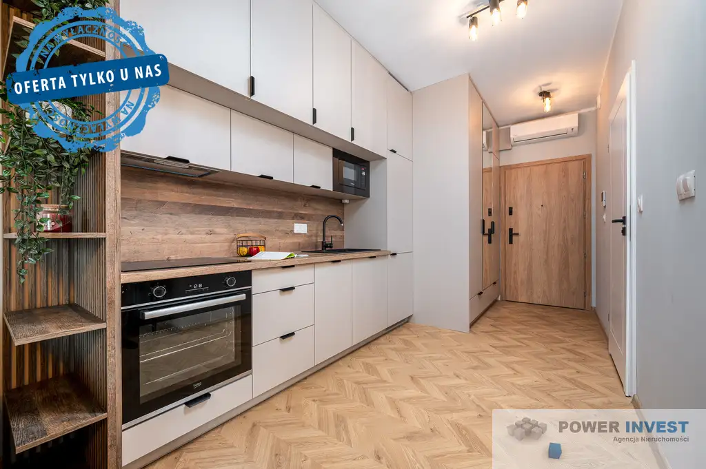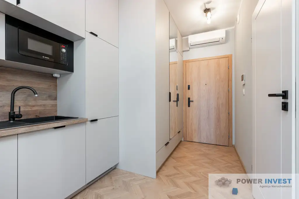 The apartment is air-conditioned. A parking space in the garage is available for rent at 300 PLN/month.