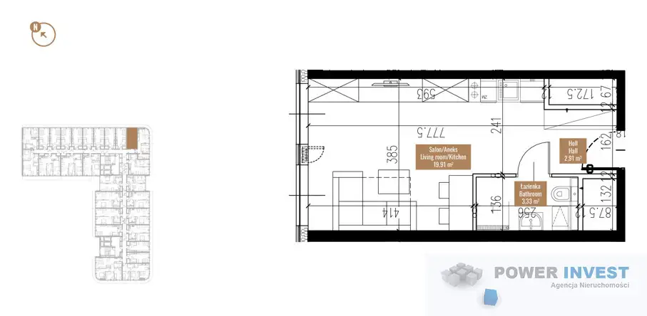 The studio apartment, with an area of approximately 27 m², is located on the 16th floor, offering a fantastic view of Katowice. It consists of a living room with a kitchenette, a bathroom, and a hallway. The apartment is fully equipped and will meet the needs of any tenant.