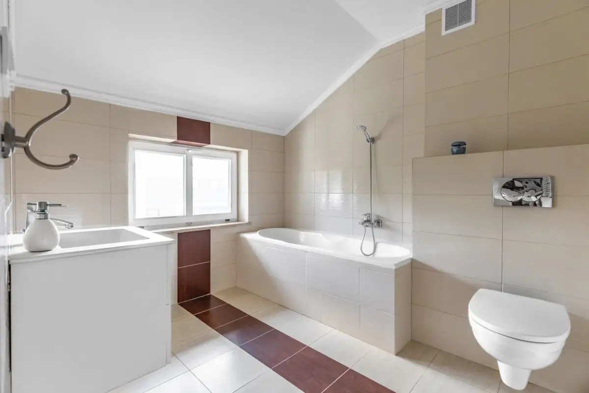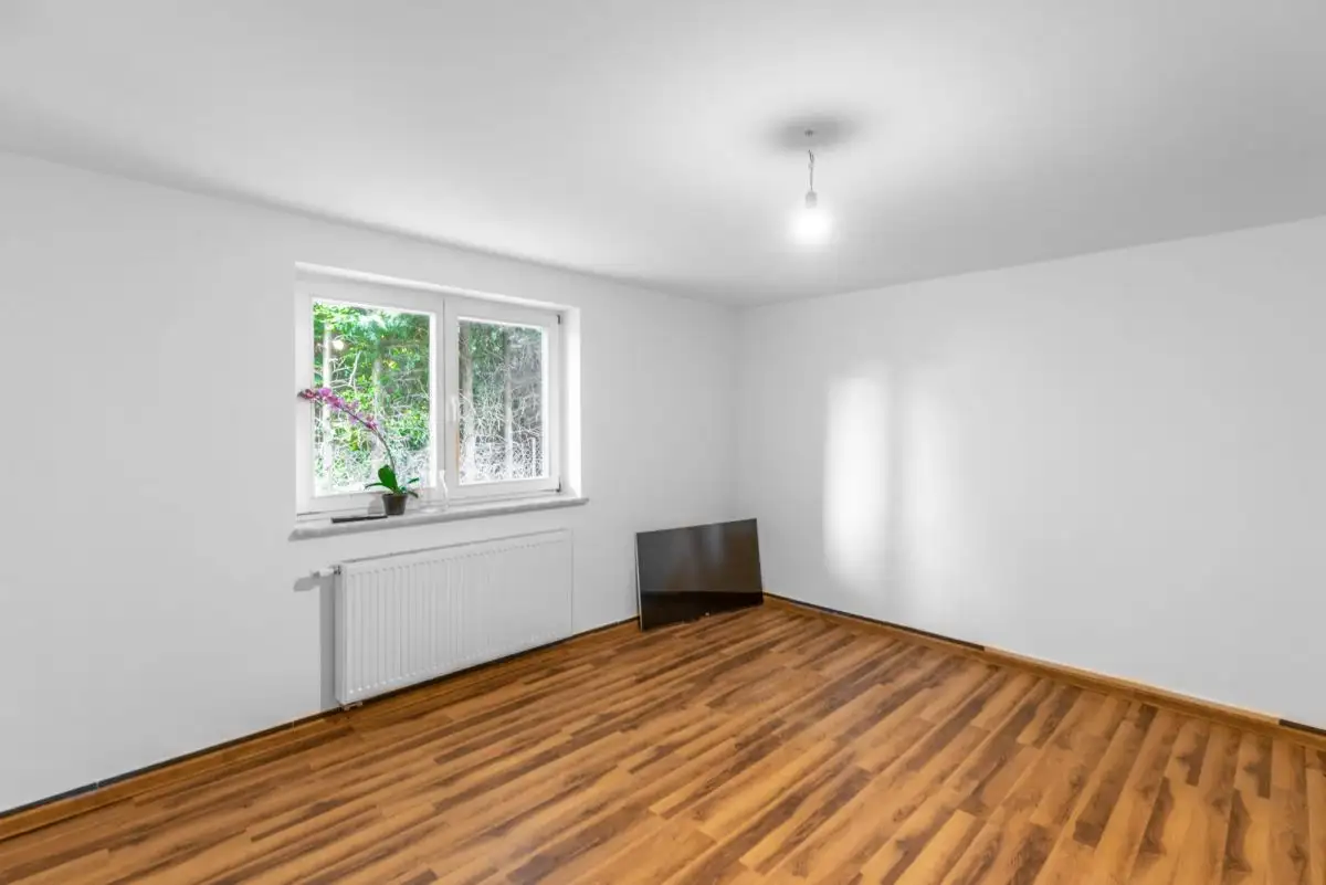 2 pokoje, łazienka z kotłownią i pralnią, garaż.