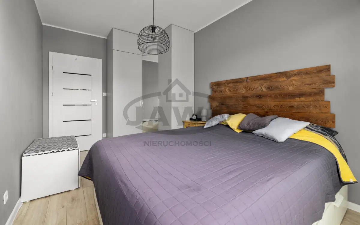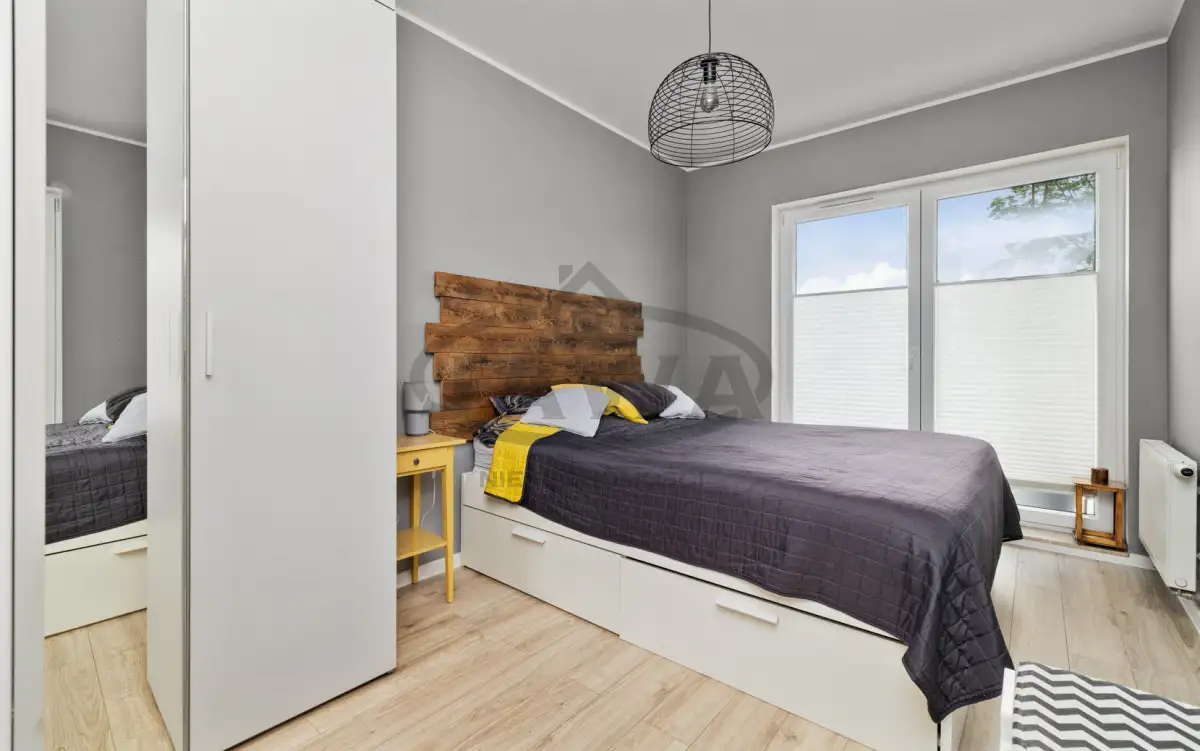 Sypialnia główna - przestronna i dobrze doświetlona, mieści komfortowe łóżko małżeńskie oraz dużą, zabudowaną szafę z miejscem na ubrania i akcesoria. Z sypialni prowadzi bezpośrednie wyjście na balkon, co dodatkowo podnosi komfort codziennego użytkowania - możesz rozpocząć dzień od porannej kawy na świeżym powietrzu lub wieczorem wyciszyć się przy zachodzie słońca.