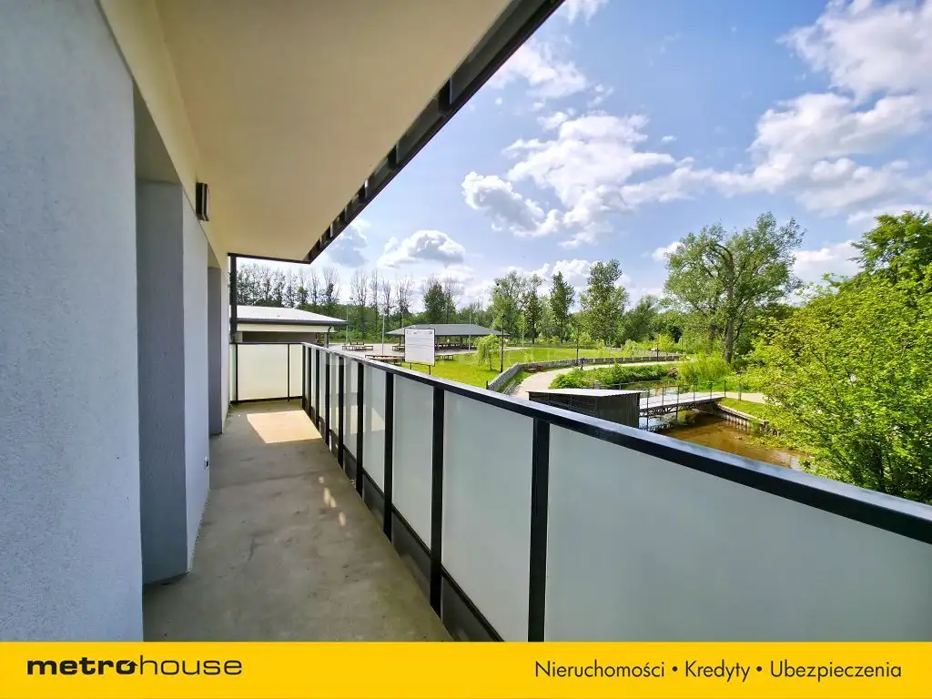- piękny widok z balkonu na rzekę Legę i tereny zielone