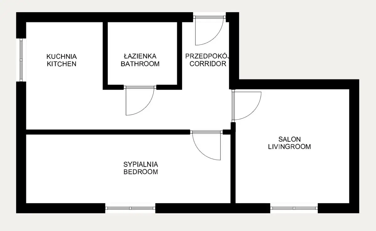 Pokoje: Sypialnia, salon, kuchnia, przedpokój, łazienka