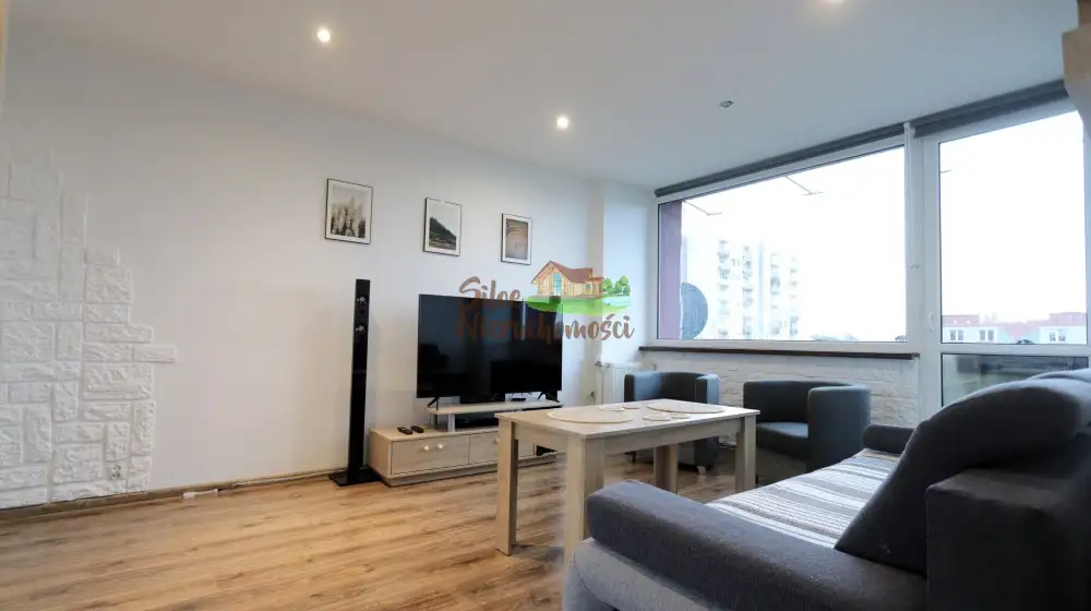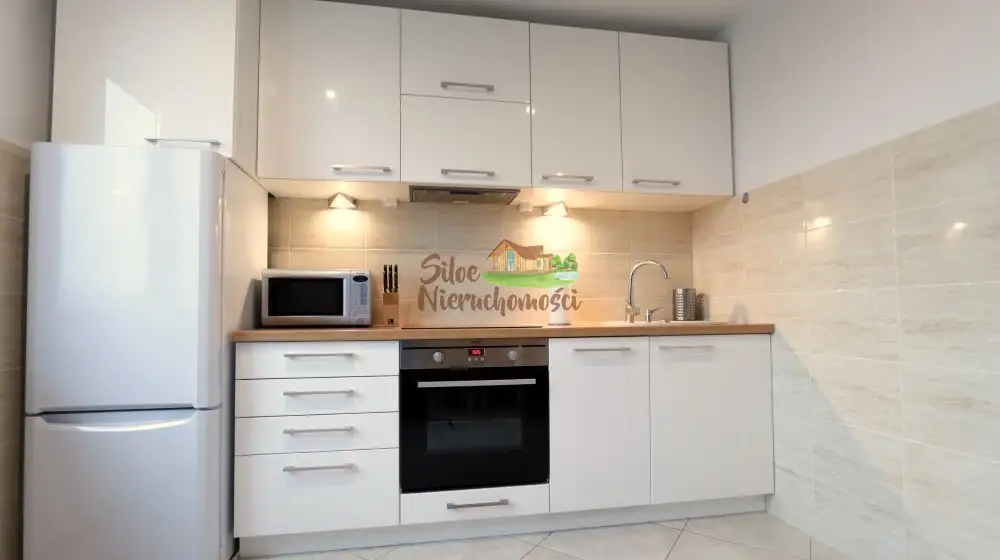 Mieszkanie jest w pełni umeblowane nowoczesnymi, stylowymi meblami i wyposażone w sprzęt AGD - zmywarkę, lodówko-zamrażarkę, płytę indukcyjną, pralkę oraz pochłaniacz. Przestronny salon z częścią wypoczynkową, dużą szafą, komodą zapewnia wygodę i funkcjonalność. Spora, oddzielna kuchnia to praktyczne rozwiązanie, a łazienka jest duża, estetyczna i w pełni wyposażona.