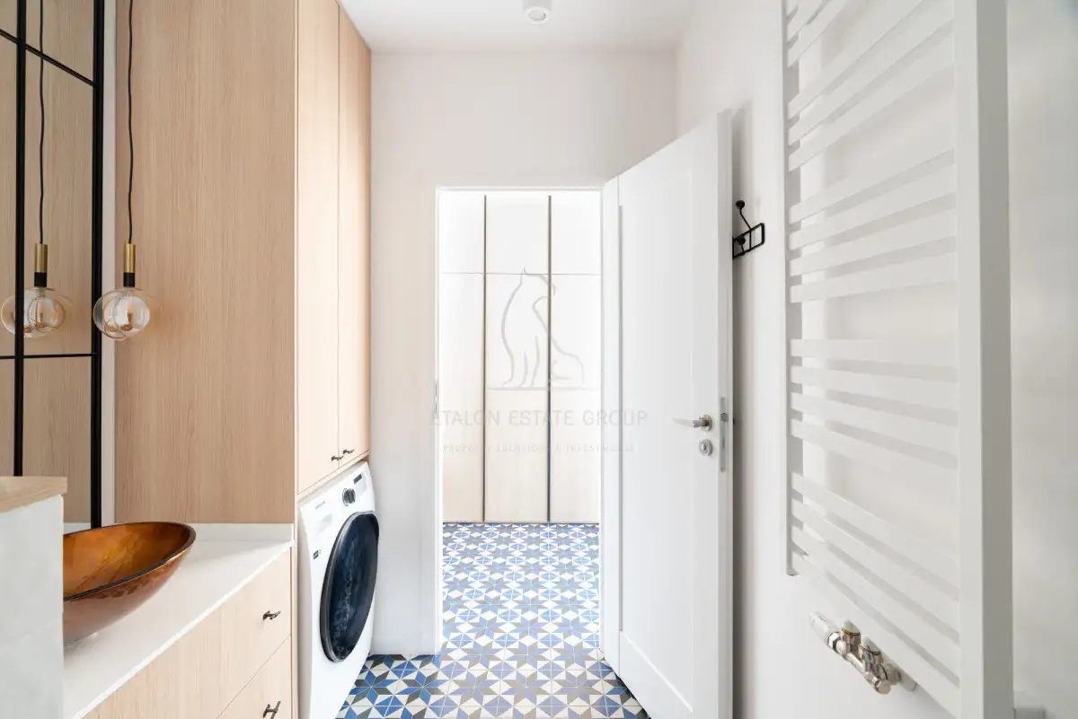 - Aneks kuchenny z pełnym AGD: zmywarka, płyta, piekarnik, lodówka