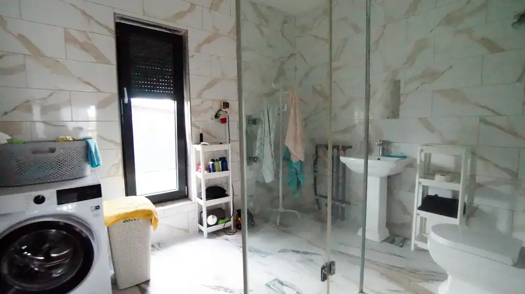 Budynek wybudowano z ceramiki. Ocieplony szarym styropianem 20cm, dach kryty dachówką ceramiczną firmy Roben, stolarka okienna trzyszybowa, sześciokomorowa firmy Ventana, z elektrycznymi żaluzjami. Ogrzewanie podłogowe -kable grzewcze, instalacja fotowoltaiczna o mocy 9,95 kW, światłowód.