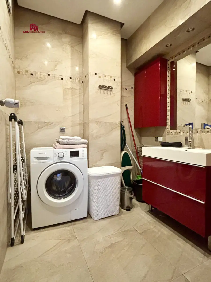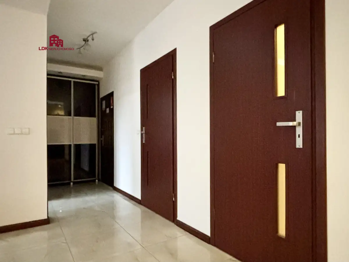 Duże okna balkonowe doświetlają wnętrza, tworząc jasną i przytulną atmosferę. W mieszkaniu znajduje się również szafa w zabudowie, co pozwala na łatwą organizację przestrzeni.