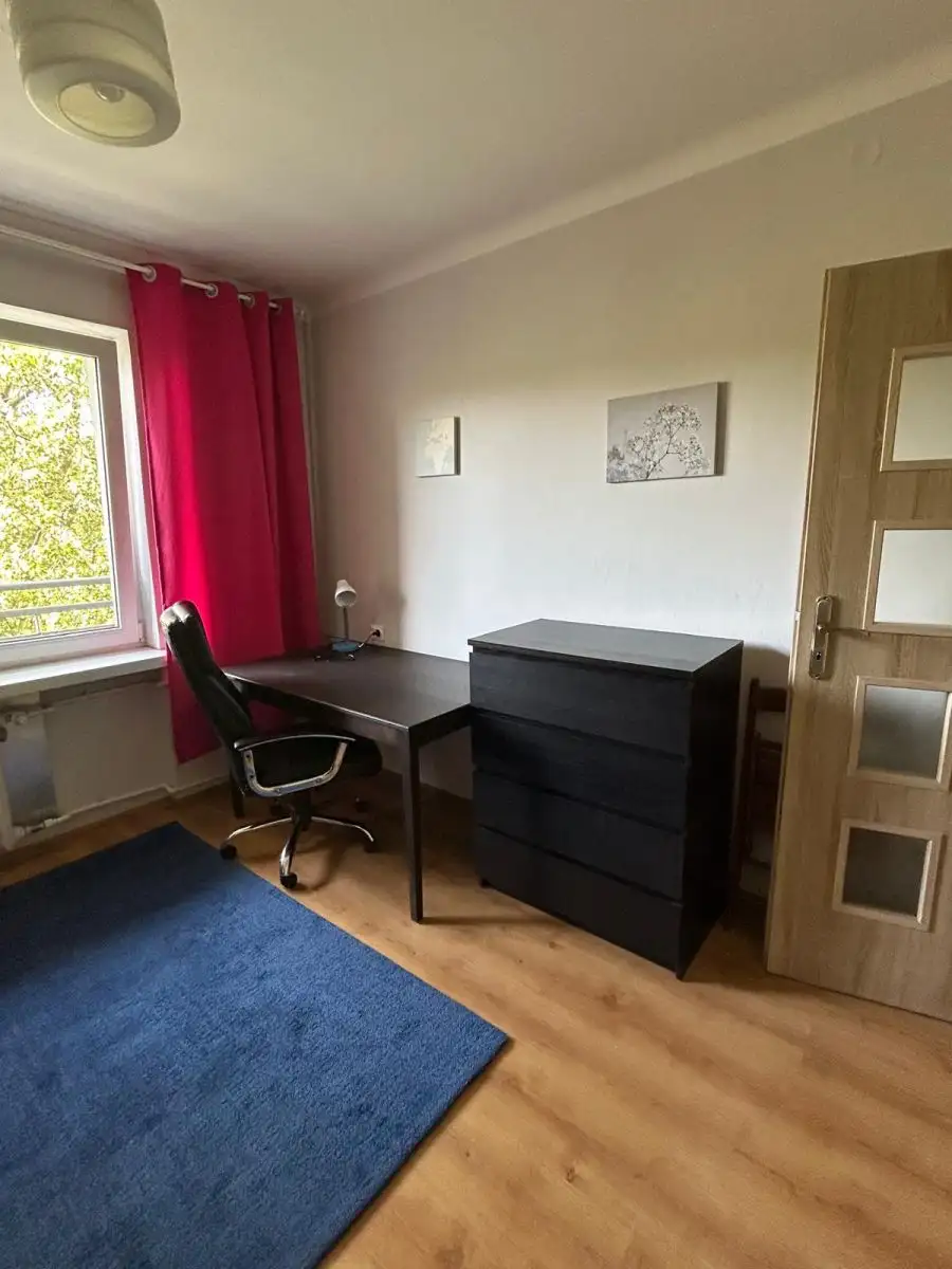 Mieszkanie wyposażone - w każdym pokoju miejsce do spania ( kanapa/ łóżko) szafa, komoda stolik/ biurko. W kuchni ciąg szafek z blatem, kuchenka z okapem, zlewozmywak, lodówka i stolik. Łazienka z kabiną prysznicową, umywalką , pralką - osobne WC.