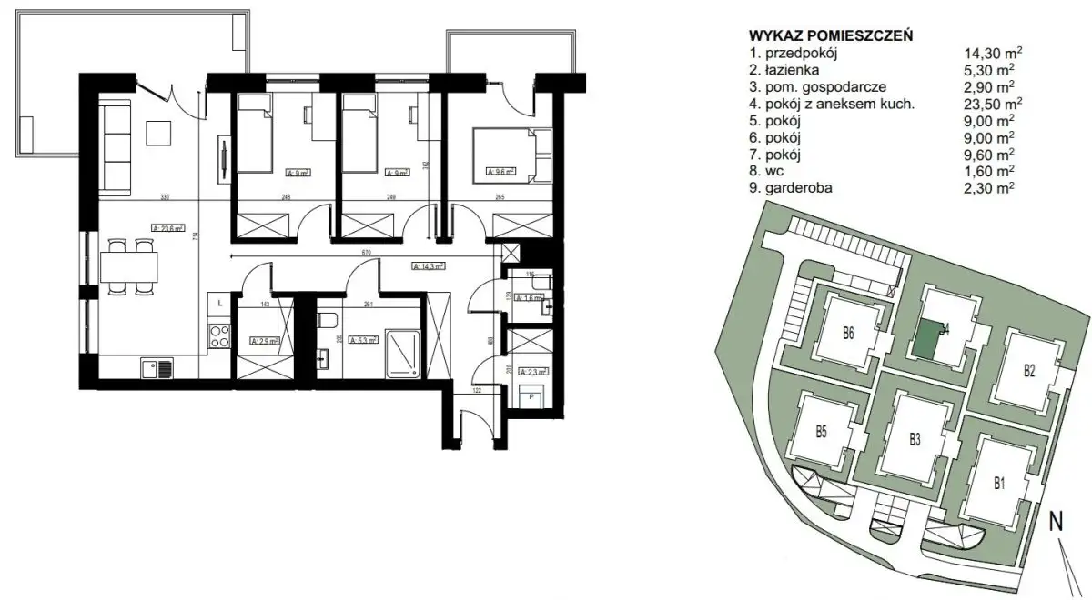 -Pokój dzienny o pow. 23,50 z wyjściem na balkon o pow. 11,00 m²,