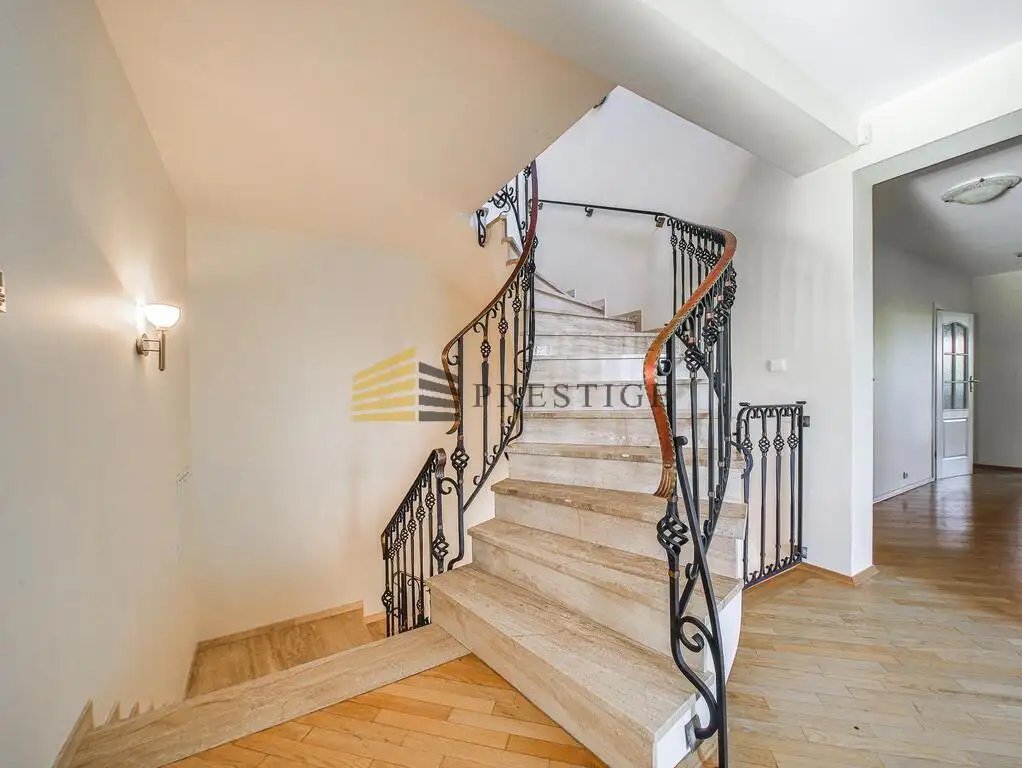 Exceptional offer to rent a spacious and luxurious house with a total area of approximately 550 sqm, along with a garden of approximately 750 sqm. This impressive building consists of 8 rooms, including 6 that can serve as bedrooms or offices, making it ideal for families with children or individuals who run a business. The large and spacious living room, which measures up to 80 sqm and features a fireplace, as well as a dining area with a large table, is the perfect place for social or family gatherings.The kitchen is fully equipped and enclosed, which provides privacy and intimacy during cooking, and allows for easy maintenance and cleanliness.The building was constructed using traditional technology, with ceramic walls and ceilings, and finished with the highest quality materials, such as wood, natural stone, and artistic ironwork. The building also includes a large garage for two cars, which provides comfortable and safe storage space for vehicles.The property has all necessary connections to municipal infrastructure, including water, sewage, gas, and electricity. The building also includes a water softening device, which certainly facilitates the daily functioning of residents.The location of the property is very convenient, allowing for easy access to Warsaw. There are numerous shops, cafes, and restaurants nearby, which will surely make the residents' time more enjoyable. The building is also close to the American School and public transportation stops, which provide convenient and quick access to various parts of the city.If you are looking for a unique place to live, this offer will meet your wildest expectations. I warmly invite you to learn more about it and contact us for more information or to arrange a visit.