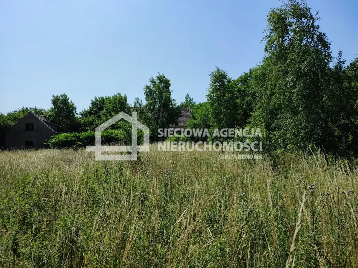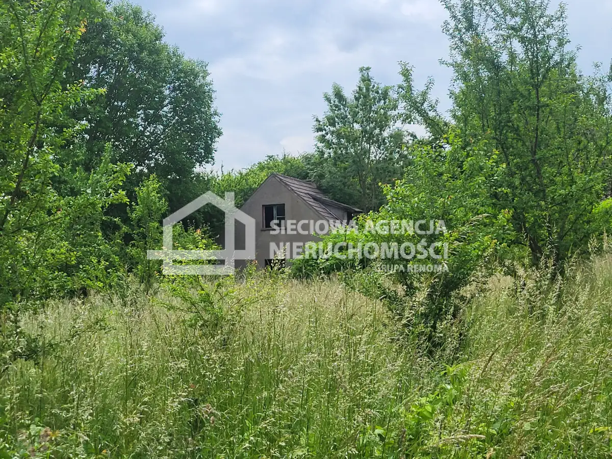 Działka ma kształt prostokąta z tyłu skarpa.. Położona na lekkim wzniesieniu nad drogą. Na działce stare budynki do rozbiórki.