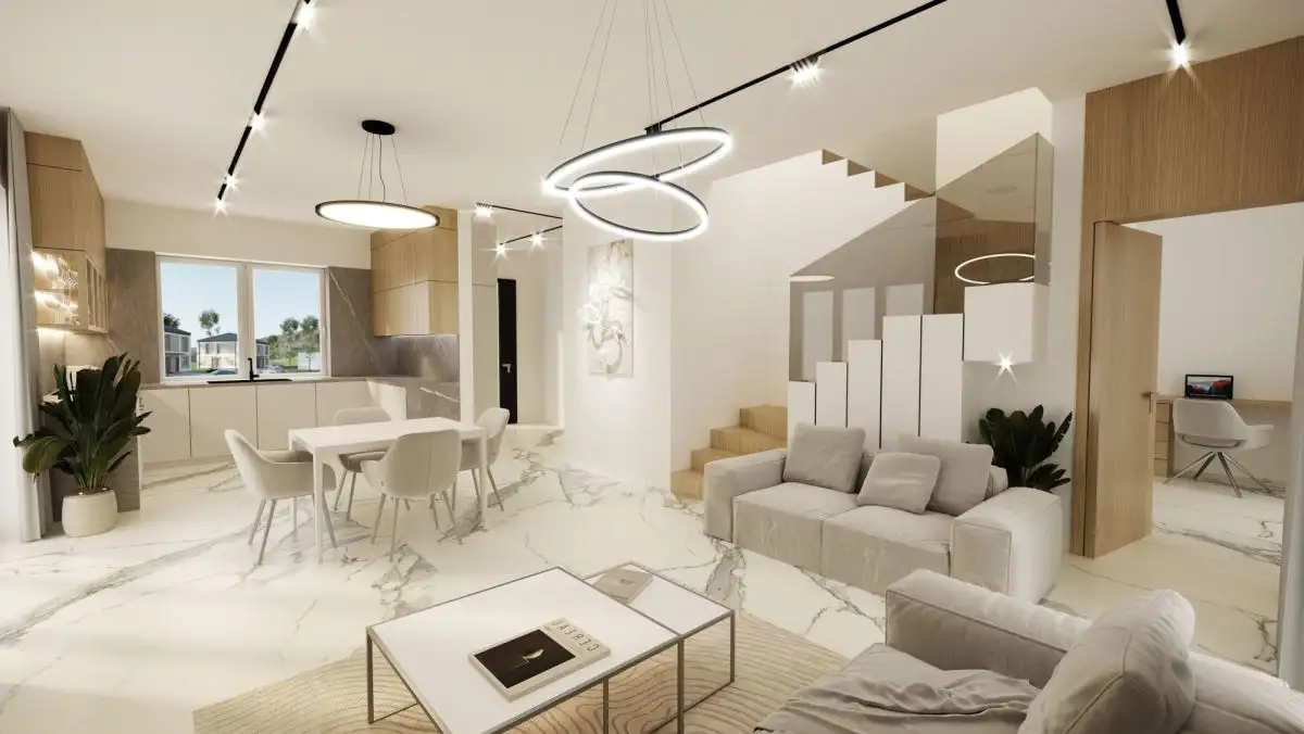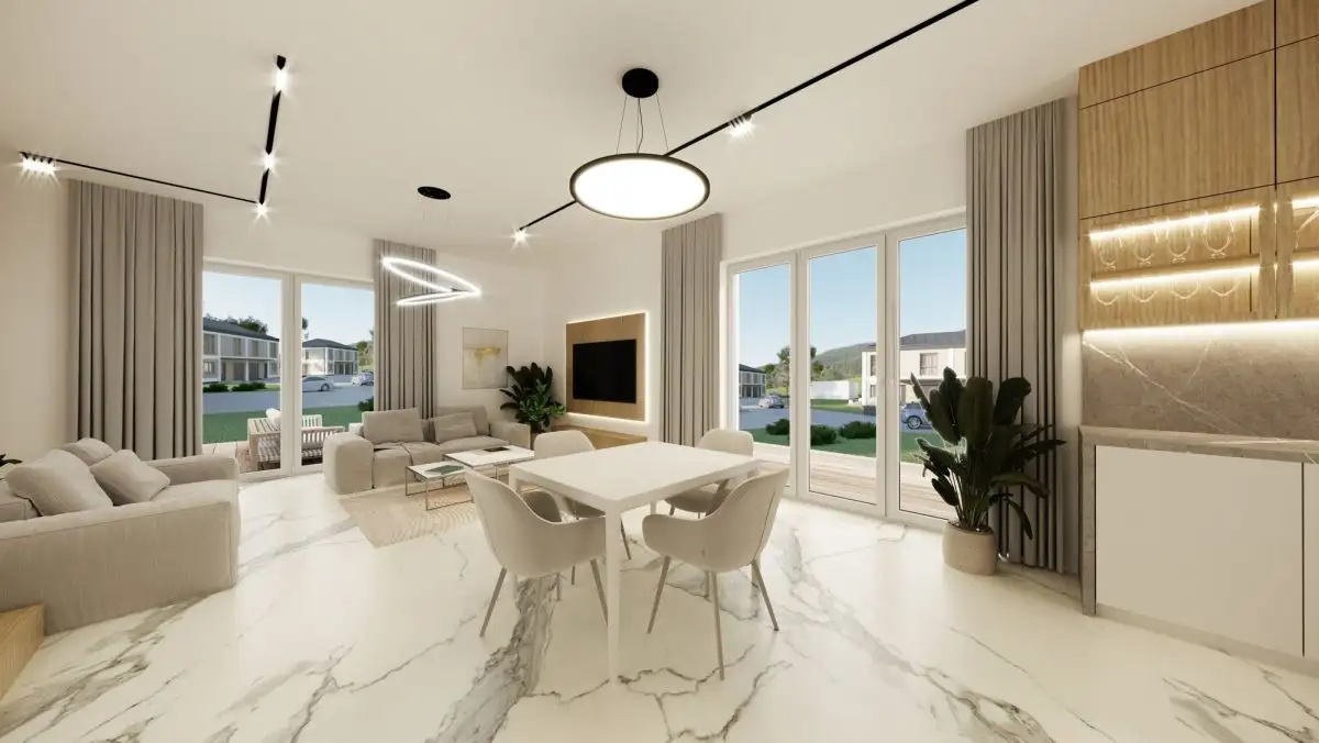 Each house has its own Viessmann heat pump included in the price, as well as a recuperation system (permanent ventilation with heat recovery), which will ensure that the temperature in the building will always be optimal and the air clean. This is ideal for people with allergies. Individual rooms on the first floor and in the garage are heated by underfloor heating. Connections for photovoltaics have been prepared in the building, which will give the possibility of paying lower property taxes in the future.