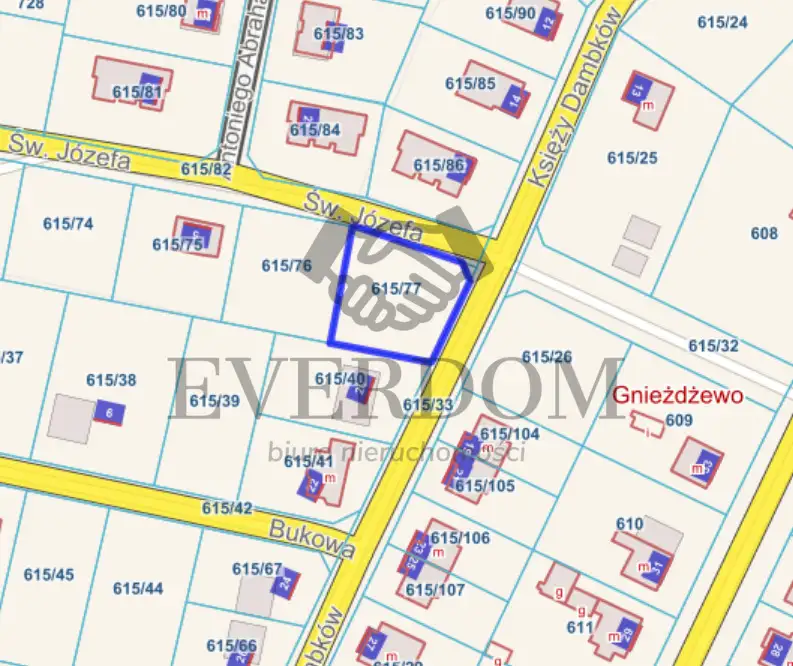 Na sprzedaż narożna działka budowlana o powierzchni 877 m² w Gnieżdżewie przy ulicy Księży Dambków.