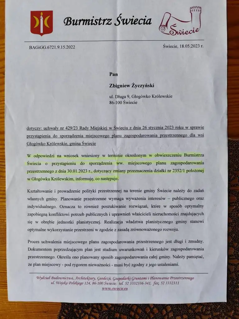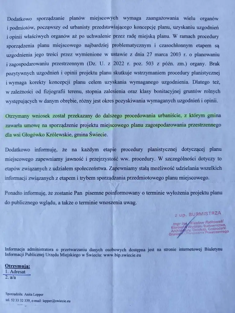 RYNEK pierwotny bez POŚREDNIKA! Sprzedam działkę o pow.2816m² Nr.2352/1 położoną w Głogówku Królewkim pow. Świecki woj. Kuj.pomorkie. Cena do uzgodnenia. Warunki W/Z w trakcie realizacji. Ponadto, Urzedom nakazano do końca roku utworzyć Miejscowe Plany. Działka 2352/1 z automatu będzie wpisana do planu jako Budowlano-Inwestycyjna. Połozona w miejscowości którj ulica Długa łączy sie z drogą krajową 91 z której można dojechac do m. Świecie i Chełmno 4km. Do Grudziądz 25km, do Bydgoszcz 40km, do Toruń 50 km. W pobliżu droga ekspresowa S-5, 5km która łączy się z autostaradą A-1 do której jest 15km. Do A-1 można dojechać też w innym kierunku blisko oraz przez mŚwiecie. Do Gdańska 120km niecała godz. jazdy. Działka otoczona drzewami sosny, świerki ,brzózki. Latem rechotanie żab, spiew ptaszkow. Idealna na wypoczynek po pracy a także miejsce na działalność gospodarczą usługową. DOM w warunkach do 170m² ale parter i poddasze razem ponad 200m². Ulica asfaltowa, dojazd do działki ok.70m droga gruntowa. Woda i prąd w pobliżu. Bedzie zakładany światłowód. jako odpr. ścieków może być Przydomowa oczyszczalnia. Posiadam taką przy moim domu.Polecam i zapraszam . Nie odpowiadam na SMS.