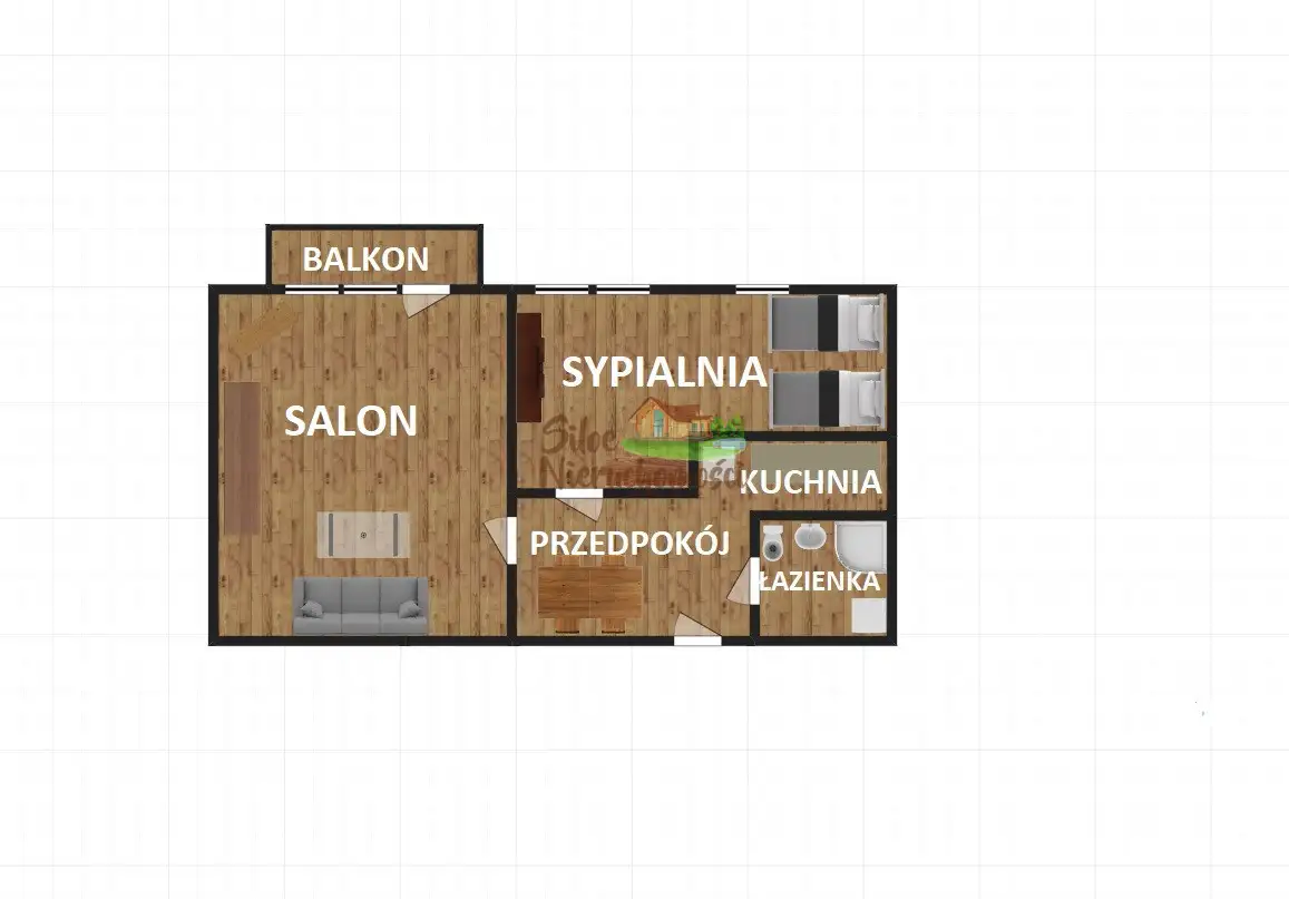 WYPOSAŻENIE:Salon: pojedyncze łóżko, duża szafa, stolik RTV, szklany stolik.
